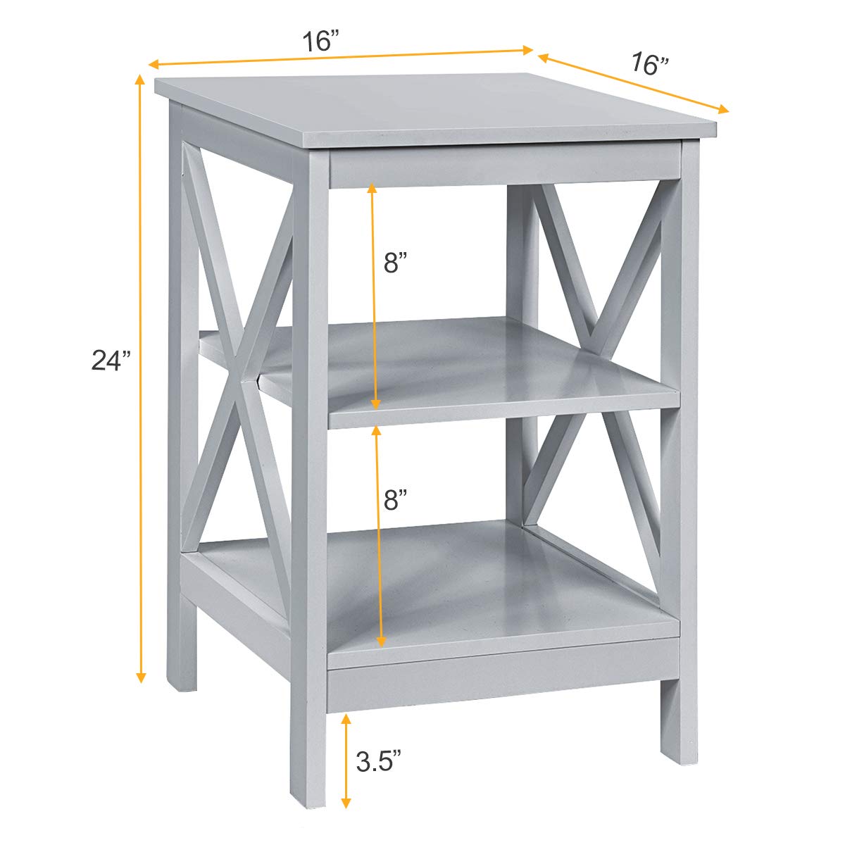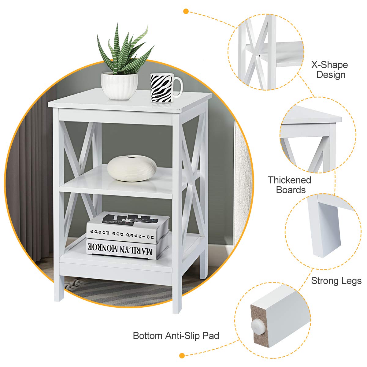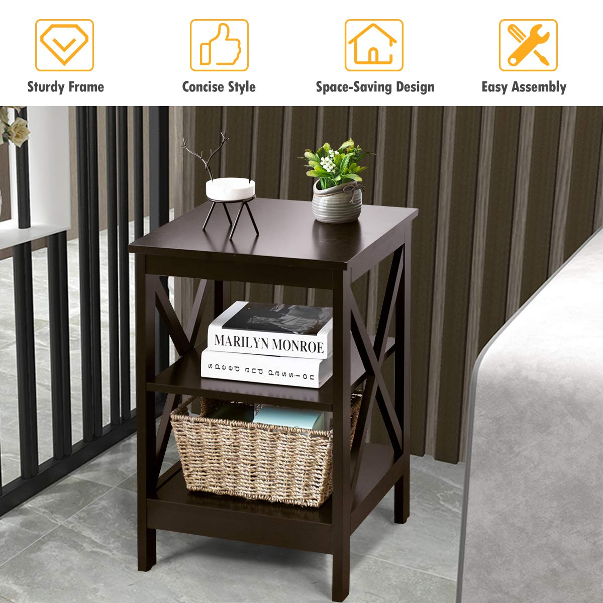 Spacious Storage Space: Comes with three tiers of storage compartment, this end table is practical and easy to organize your daily supplies. Items can be placed on the desktop or on the lower shelves according to your different needs and preference.