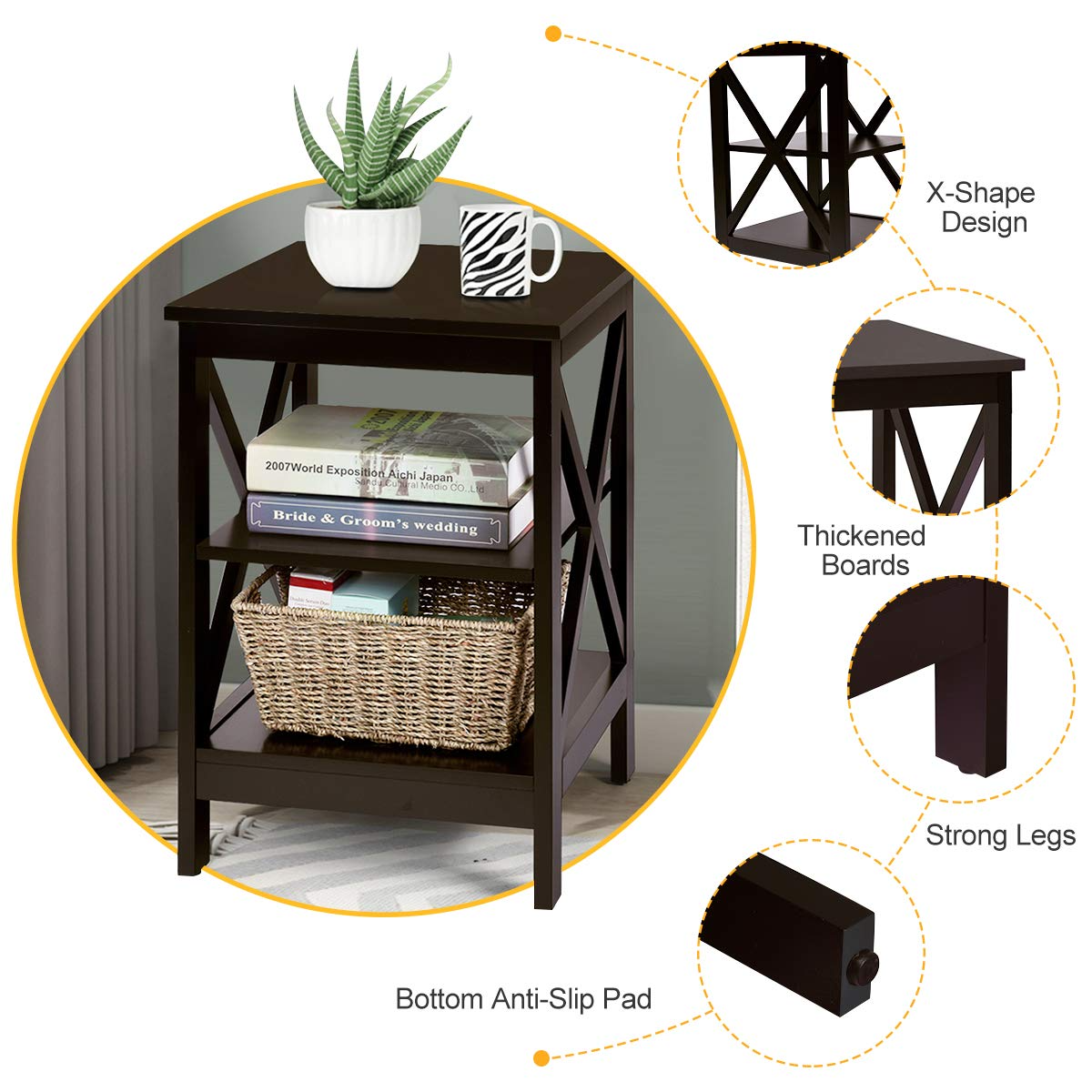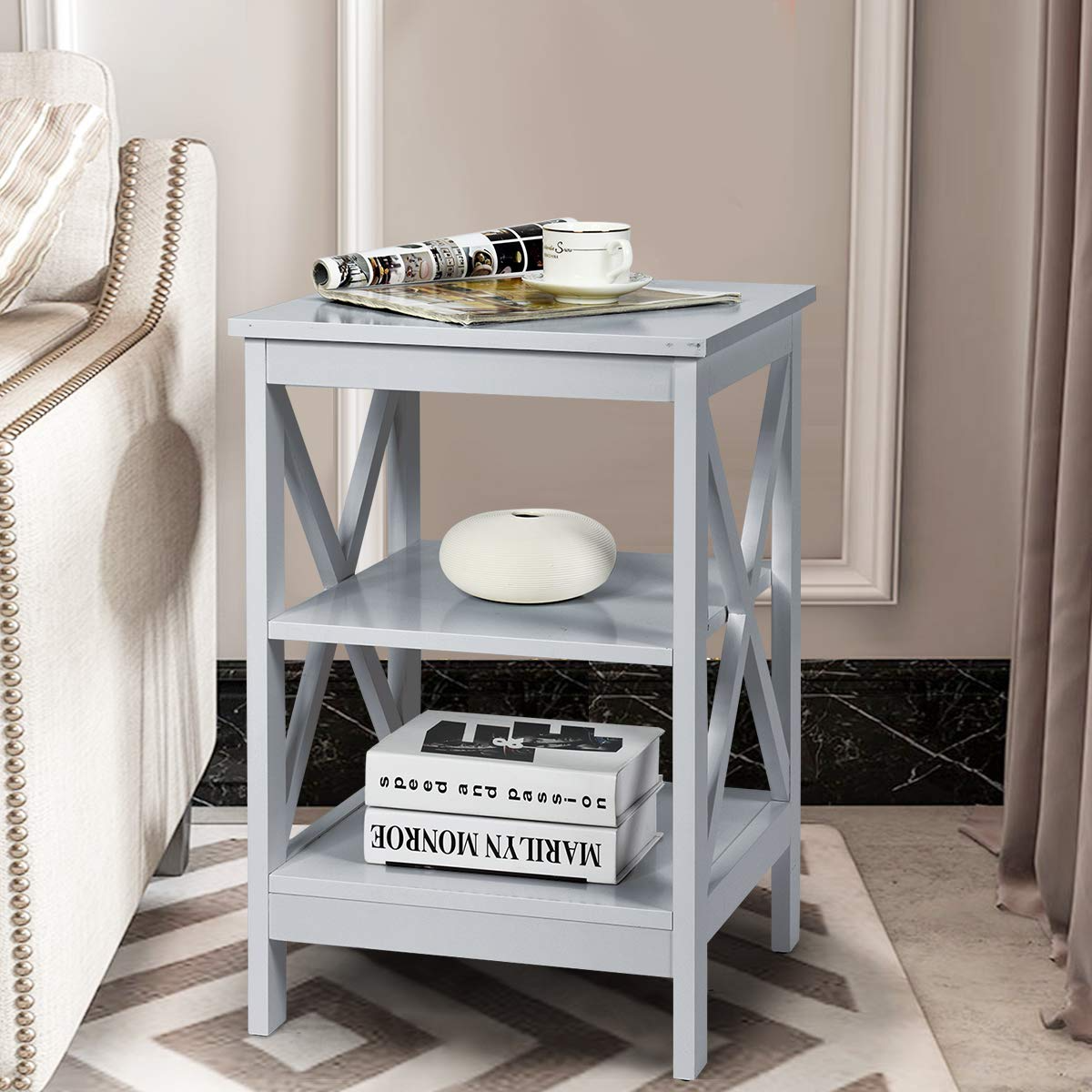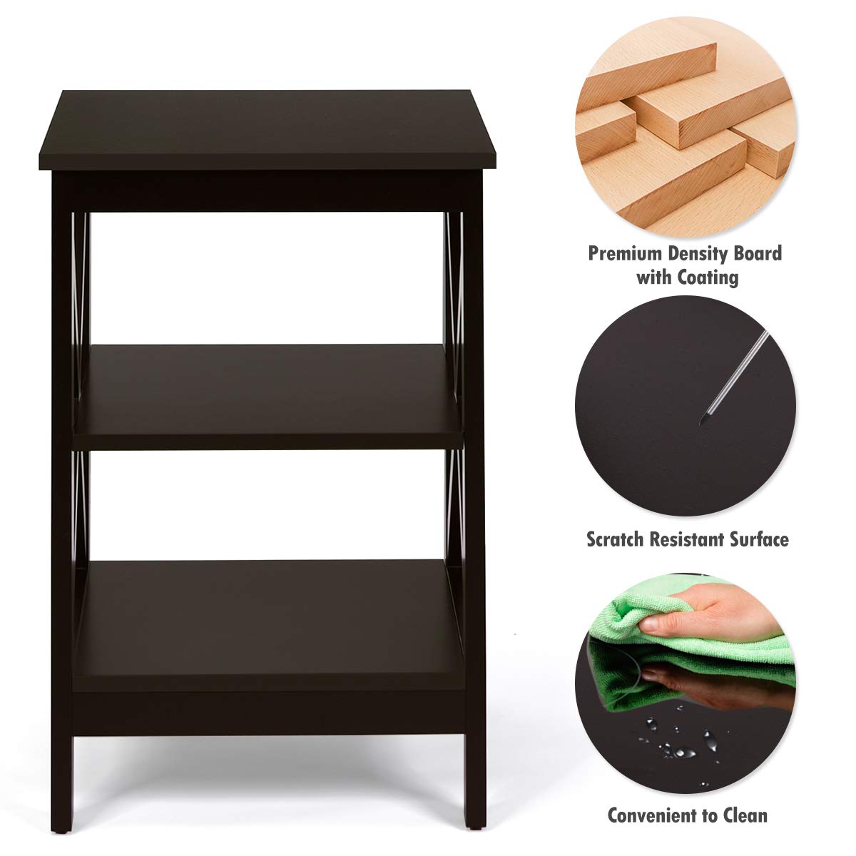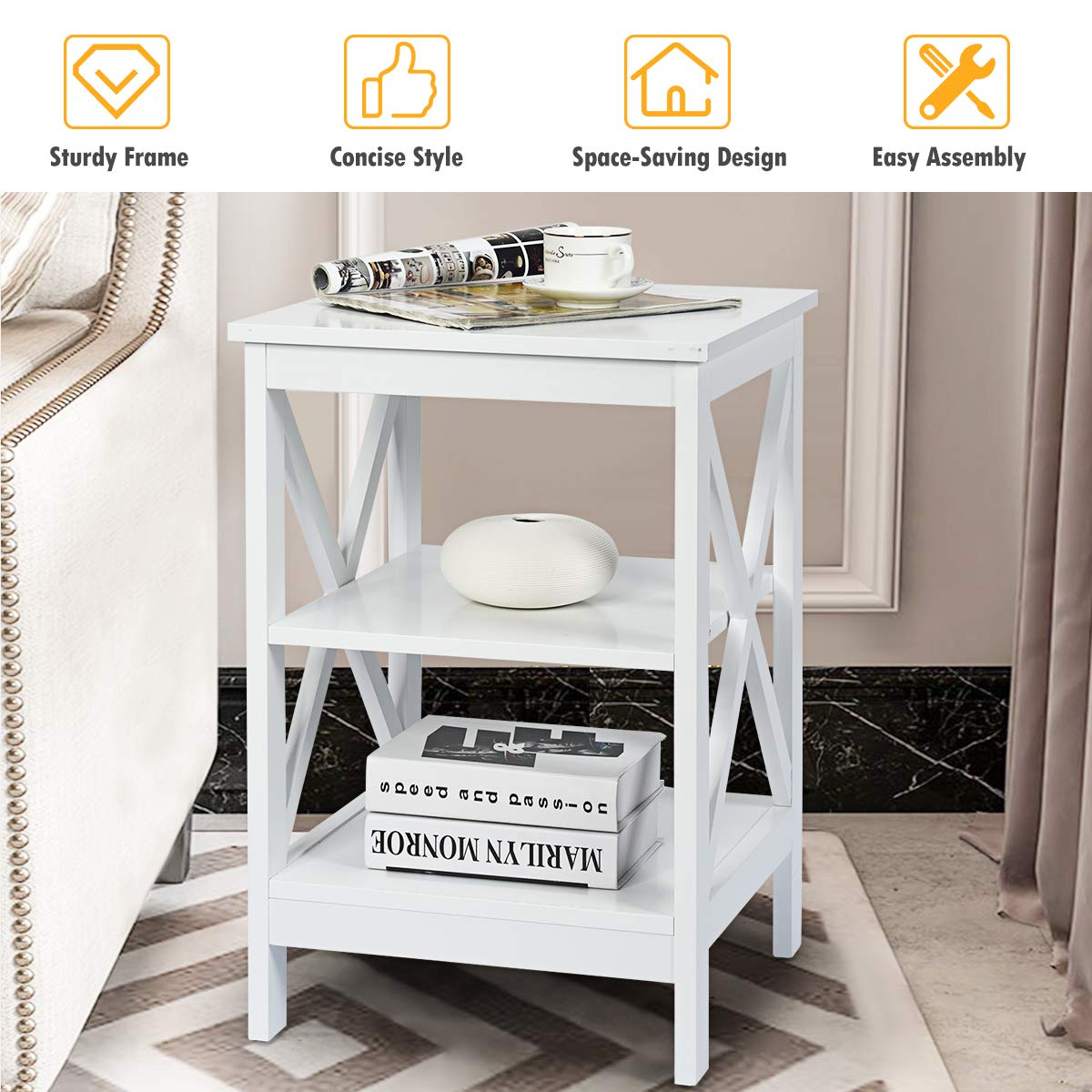 Spacious Storage Space: Comes with three tiers of storage compartment, this end table is practical and easy to organize your daily supplies. Items can be placed on the desktop or on the lower shelves according to your different needs and preference.