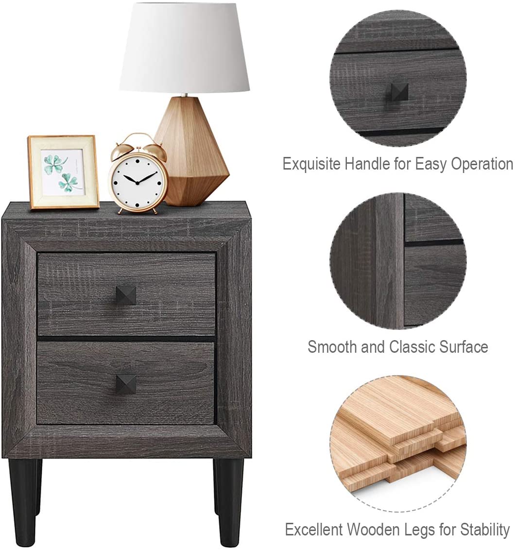 • Retro & Concise Design: The dark grey color of the nightstand creates an atmosphere of elegance and gracefulness. You will be attracted by its appearance deeply. It is a great fitting to a classic room and will make a perfect addition to the room.