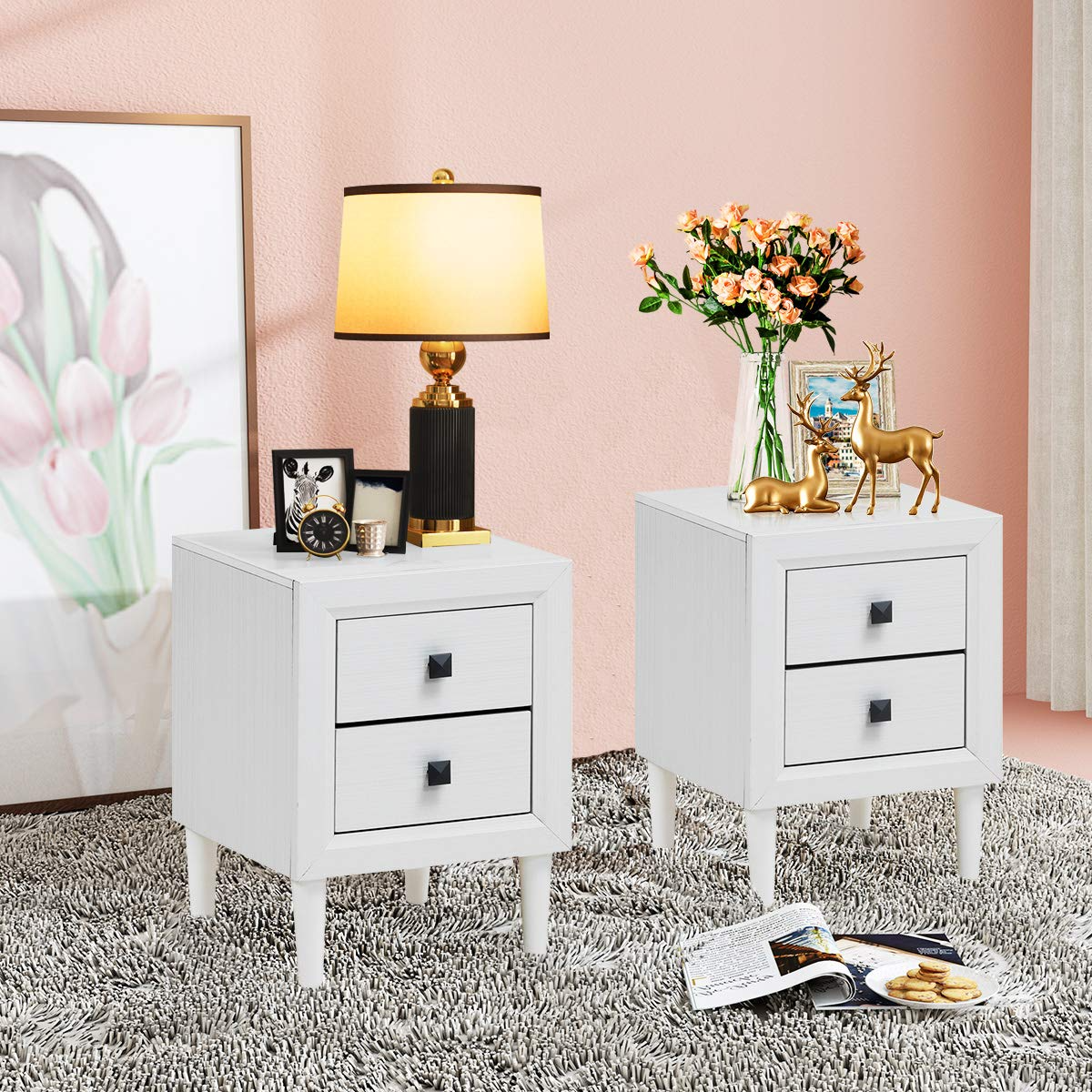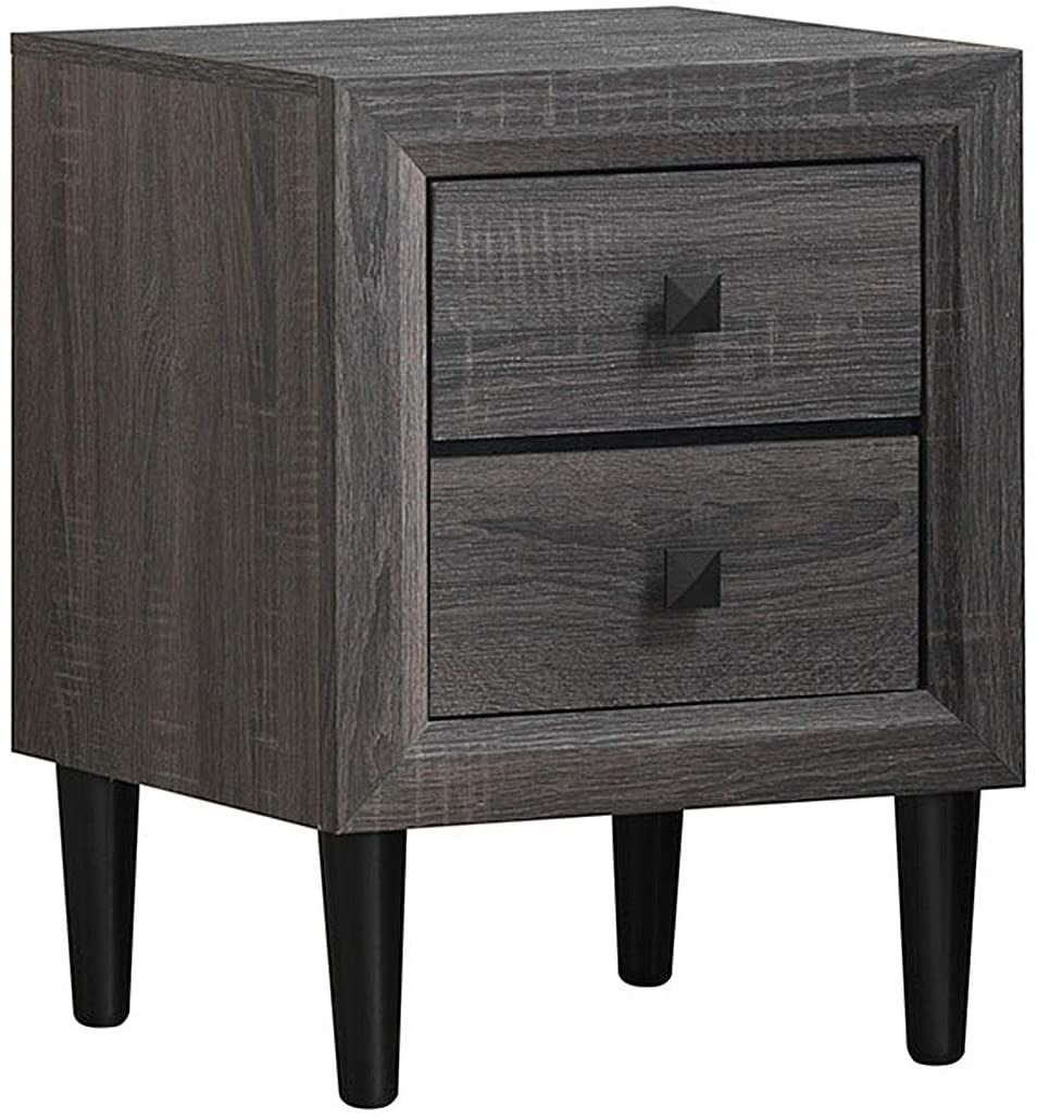 Are you finding a nightstand for your bedroom? This nightstanddesigned in retro and concise style may help you solve this problem. It featurestwo drawers and two exquisite handles. On the top, you can place some of yourdecors like photo frame or vase. In the drawer, you will have additionalstorage space to put some small articles and they can be easily to find whenyou need them. The nightstand is mostly made of high-quality MDF. Therefore, theentire structure of this nightstand remains very solid and durable. And evenmore, it has 4 durable feet made of rubber wood which also ensures stability.This nightstand is not only conformity with your room style but decor yourroom. And you can put it in the corner or other small place to use the space in an efficient?way. Do not hesitate to buy it.