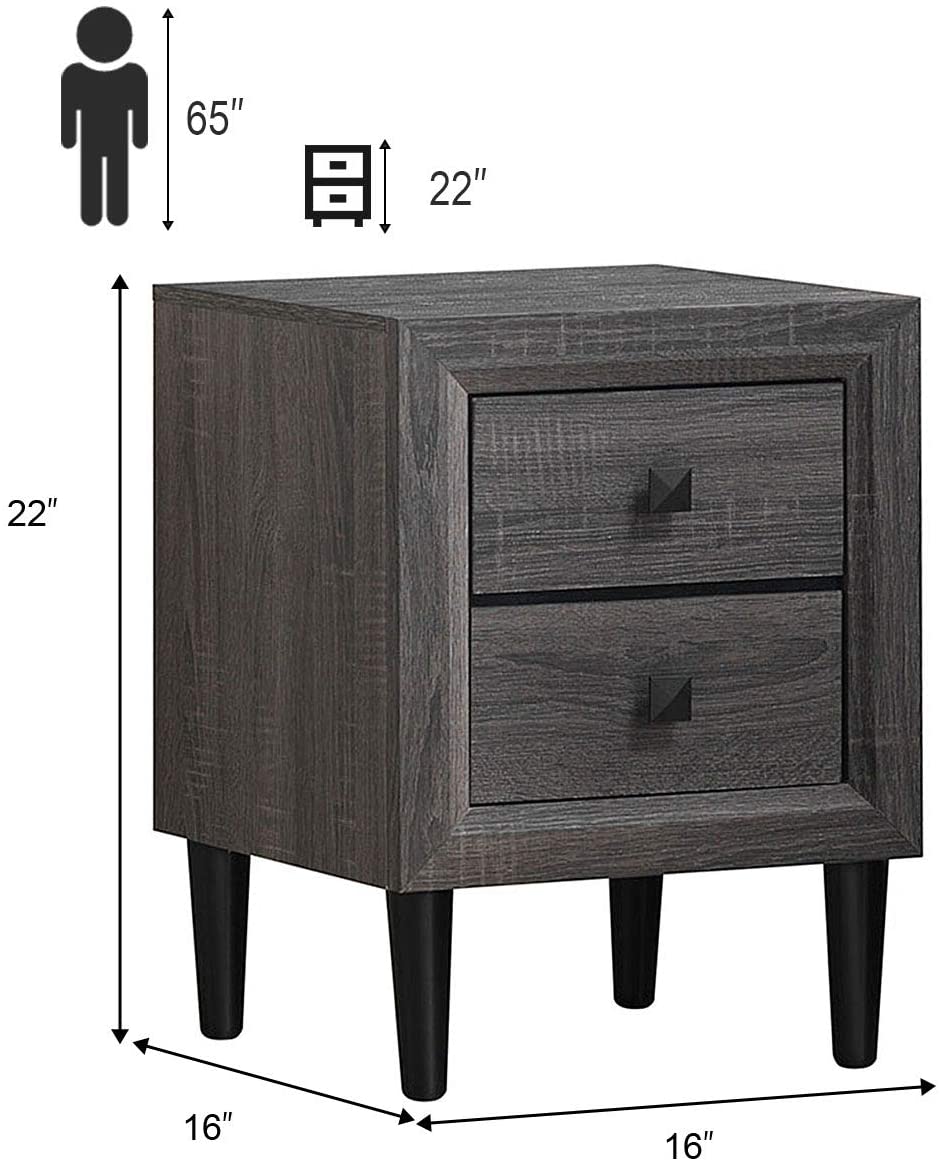 Nightstand Wooden W/Two Storage Drawers and Handles