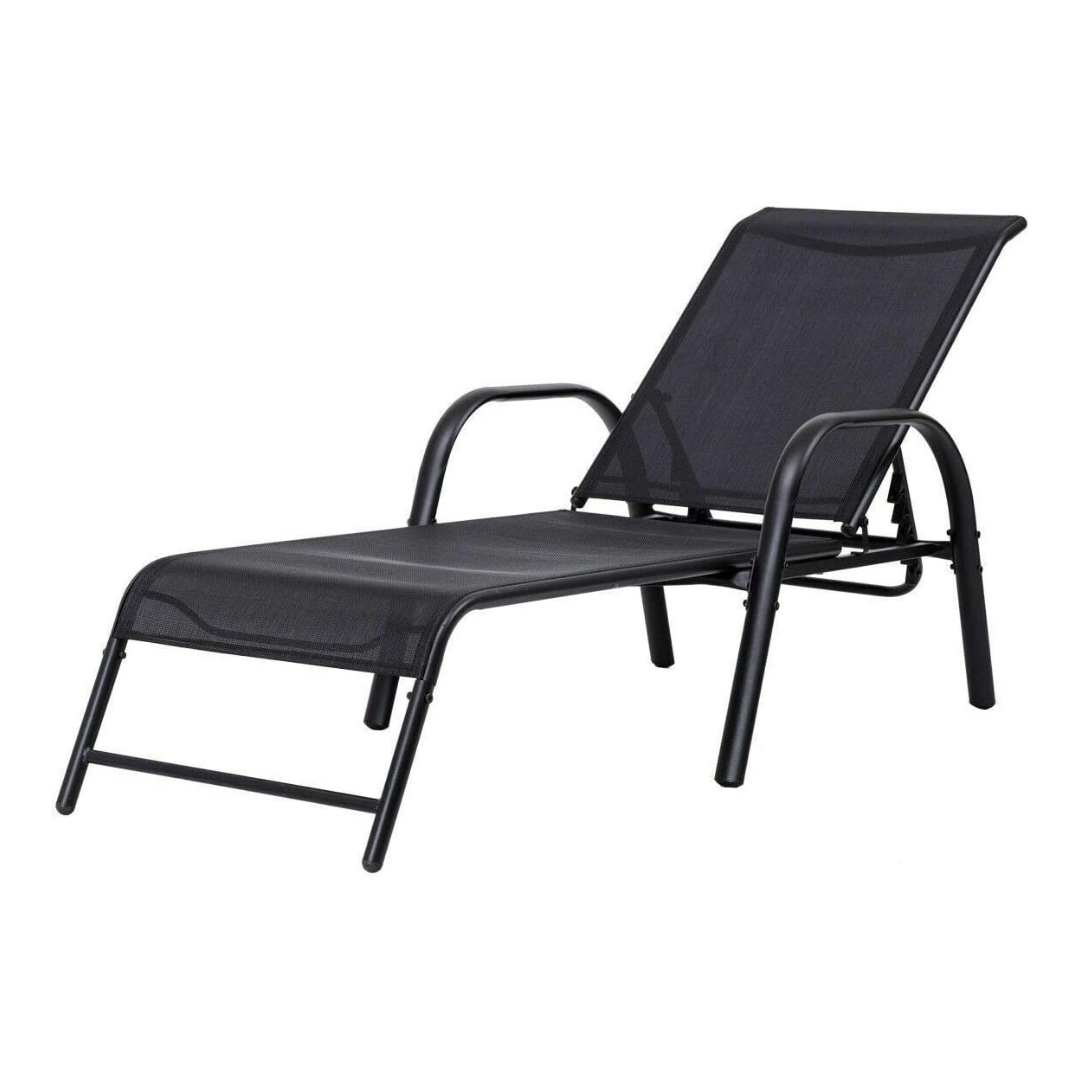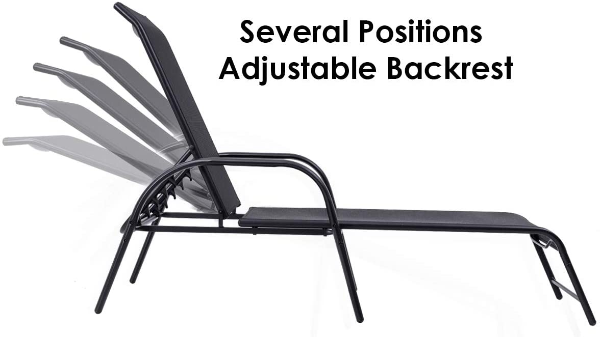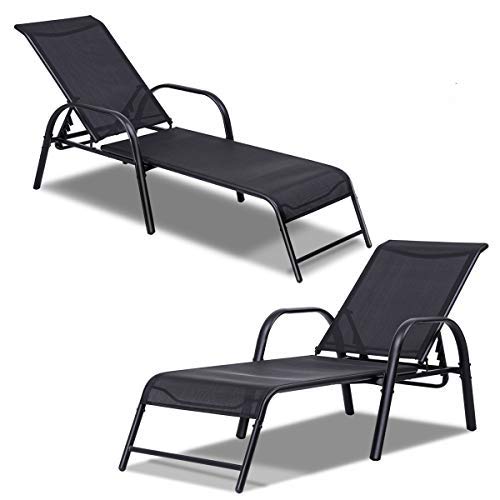 Our Giantex outdoor metal chaise lounge chair with arms and adjustable back is crafted of a heavy-duty powder-coated steel frame. Besides, backrest and seat are wrapped in weather-resistant and breathable mesh, which perfectly allows for air flow on those hot days of summer. Both chairs' frame and fabric are long-lasting and easy to keep clean. The chair back can be easily adjusted to recline in five lounge positions.