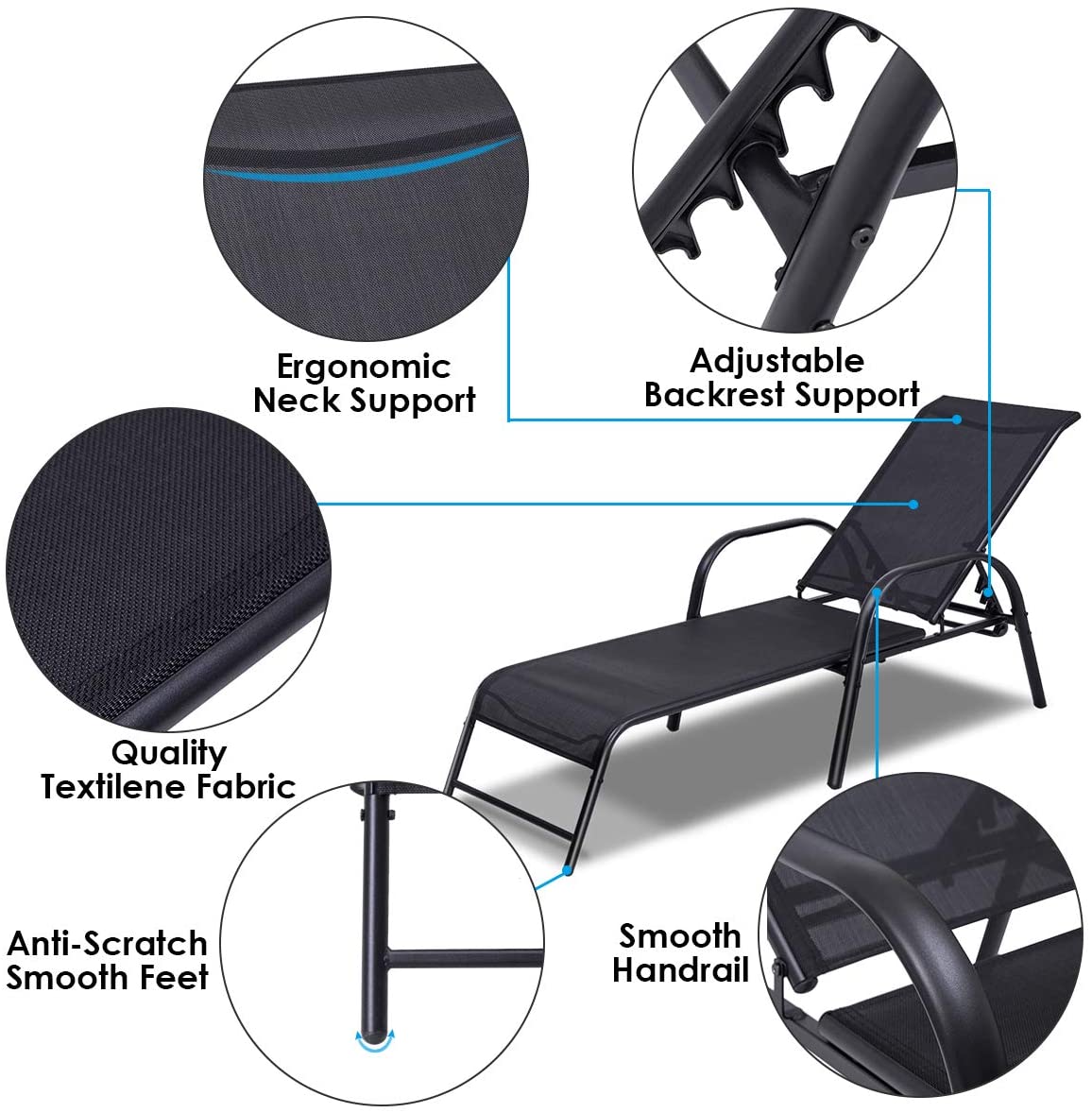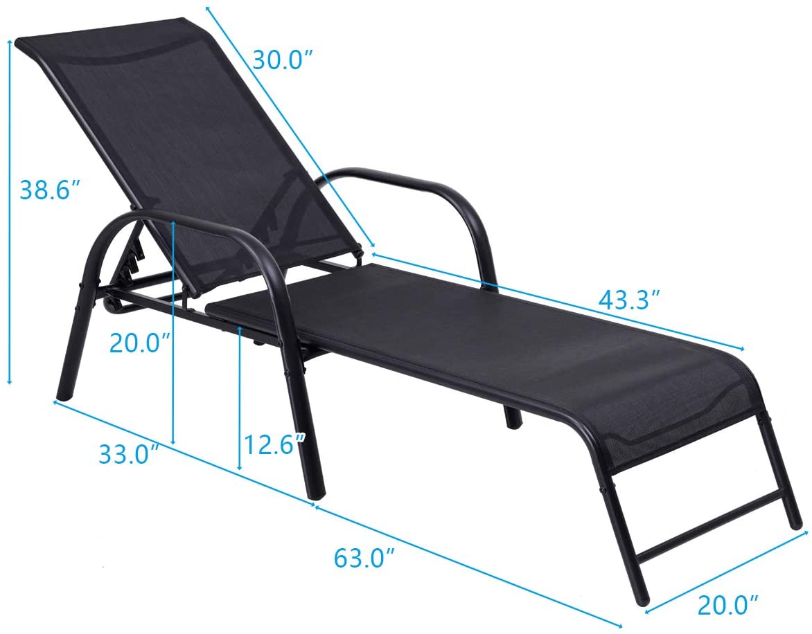- Durable and Solid Metal Construction- The entire frame of the one patio lounge chair is crafted of high-quality and long-lasting steel which is handled with exquisite black finish. Legs give strong support to the chair body and person on it.
