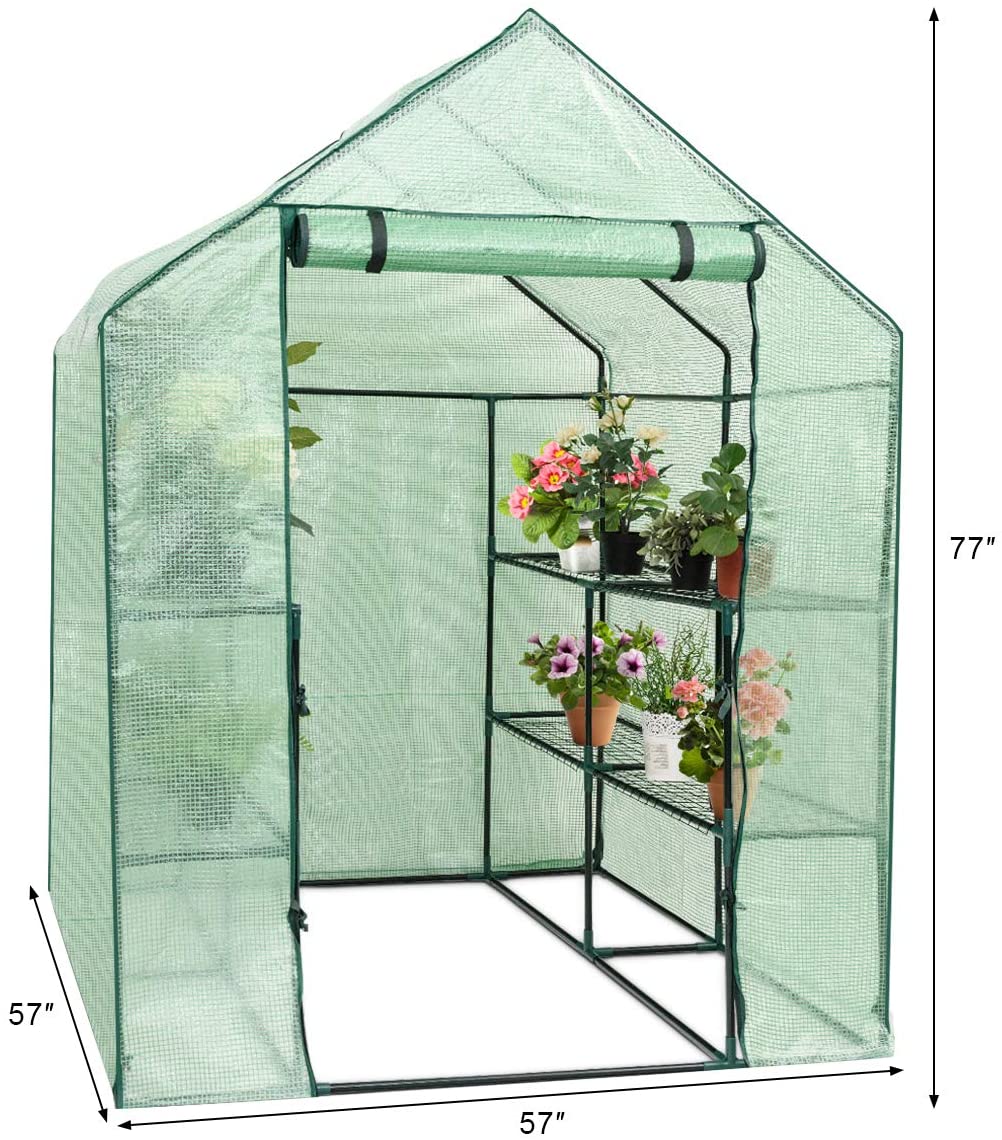 This portable, walk-in greenhouse is perfect for extending your growing seasonand protecting your plants. Flowers in it can enjoy sunbathing and grow healthy in cloudy, in snowy or in other conditions. In a word, this walk-in green houseis ideal for plants protection and improved growth. Great for giving seeds,seedlings and young plants an early start.