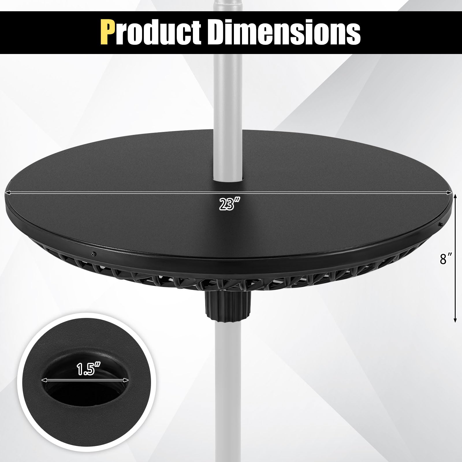 Enhance your outdoor experience with our patio umbrella table tray, designed for convenience and durability. Measuring 23" x 8" (Dia. x H), it features three adjustable umbrella hole rings (1.5", 1.34", and 1.26" diameters) to ensure a secure fit for most umbrella poles.