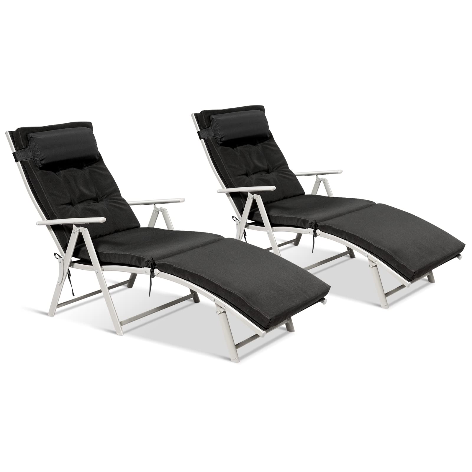 Pool Folding Reclining Beach Chair W/Removable Cushion&Headrest Pillow