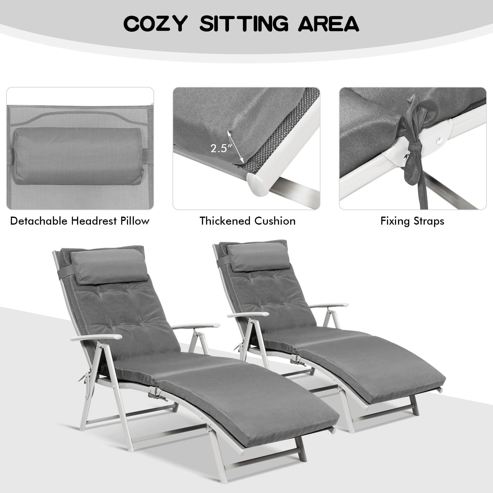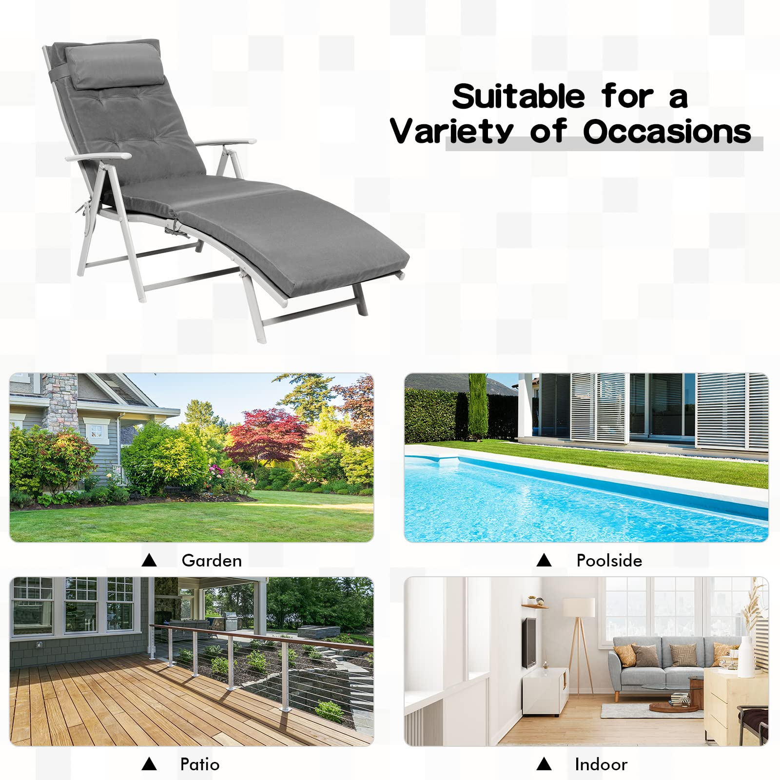 • Multiple Available Occasions: The seat cushion and headrest pillow are easy to detach so the chaise lounge is suitable for all-season use. Also, the weather-resistance material and elegant appearance of this patio lounge chair make it ideal for both indoor and outdoor occasions, such as garden, poolside, patio and living room.
