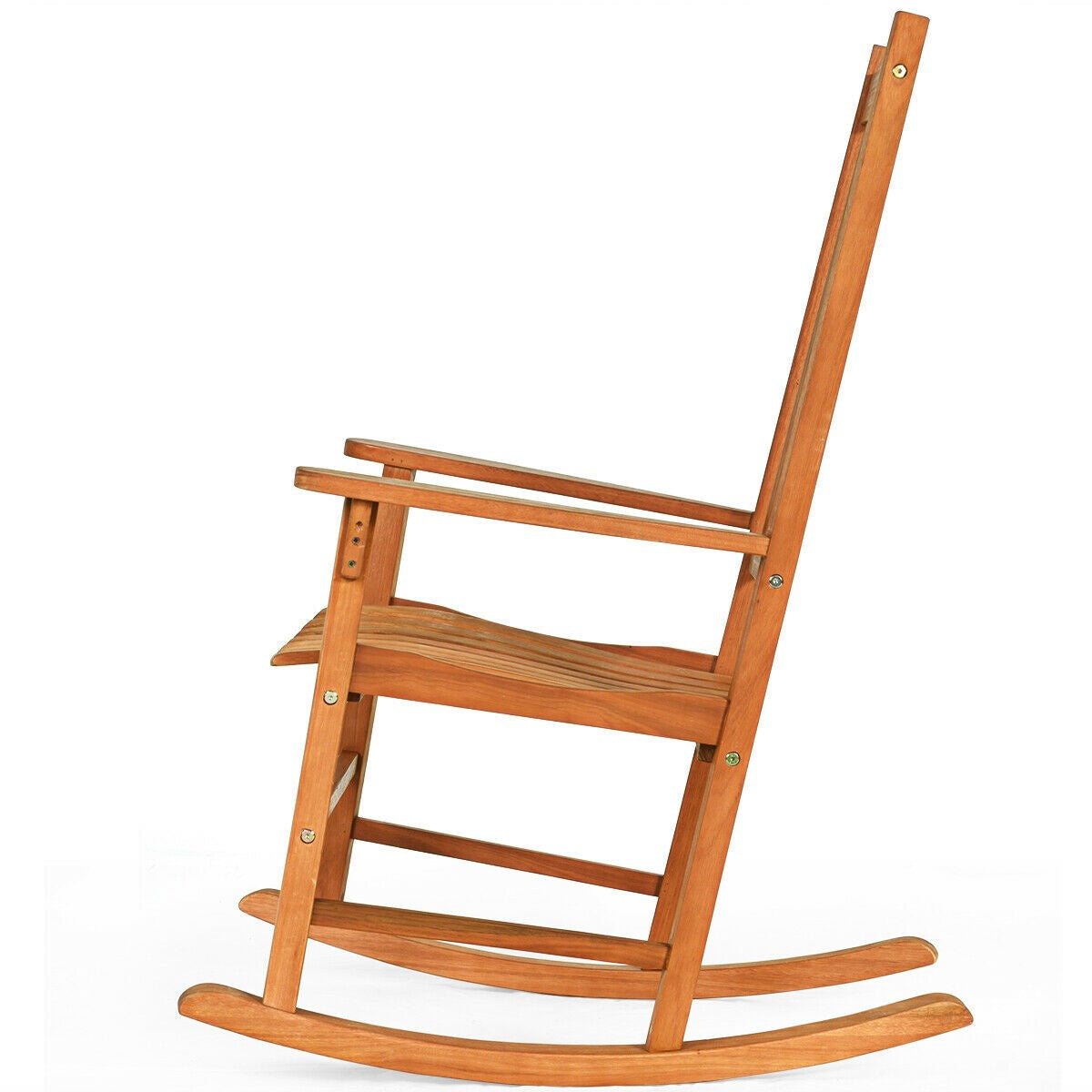 Our patio rocking chair can bring abrand new experience in your little garden! Image you are drinking a cup of tea and appreciating your flowers lying on the rocking chair. This rocking chair is designed with contoured slatted seat, high back and widened armrest, which brings you more comfort than other chairs. Made of premium eucalyptus wood with linseed oil varnish cover, this corrosion-resistant rocking chair can withstand all four seasons and a range of climates. Assembly is also easy for adults including the elder.