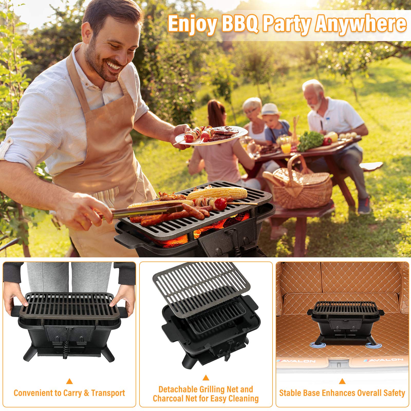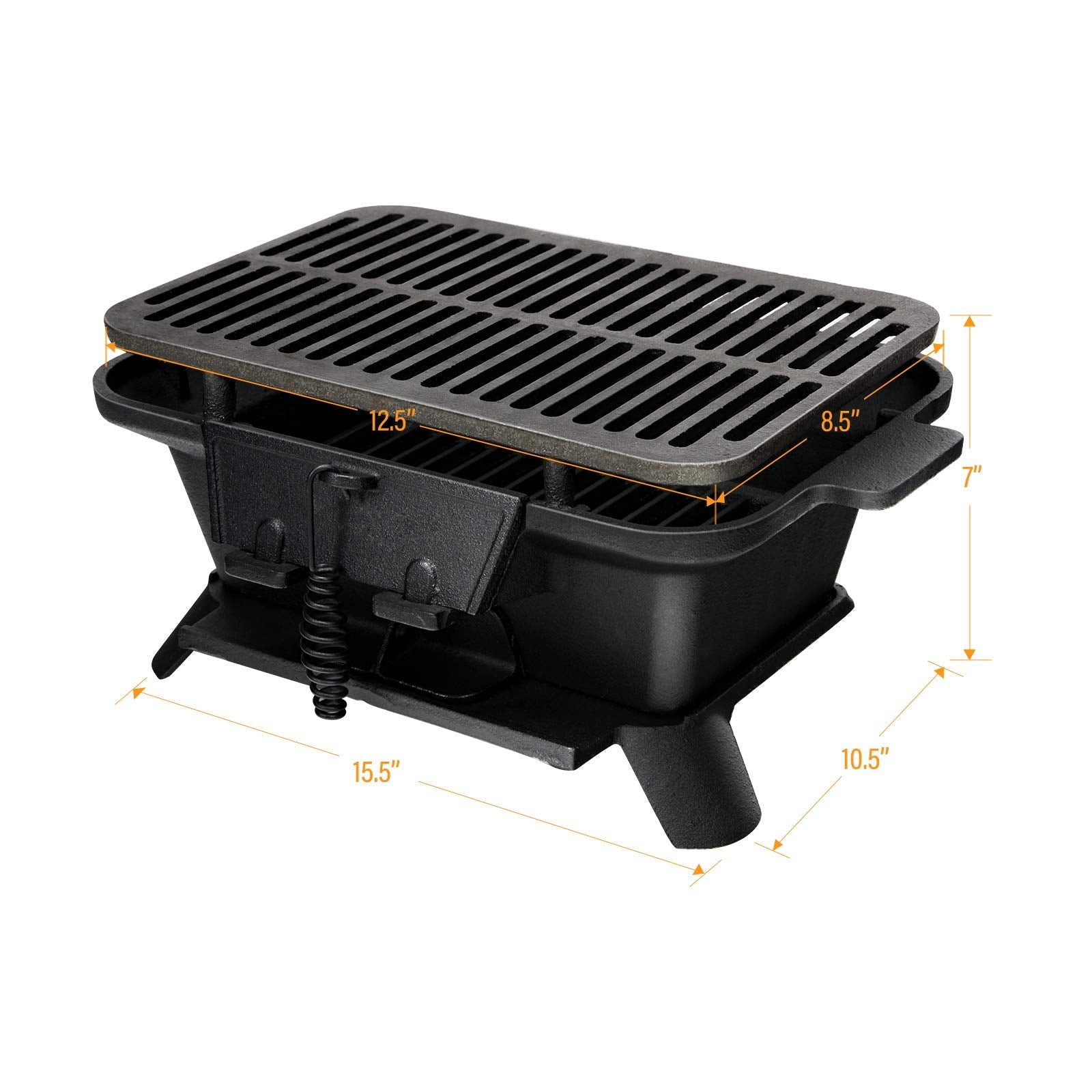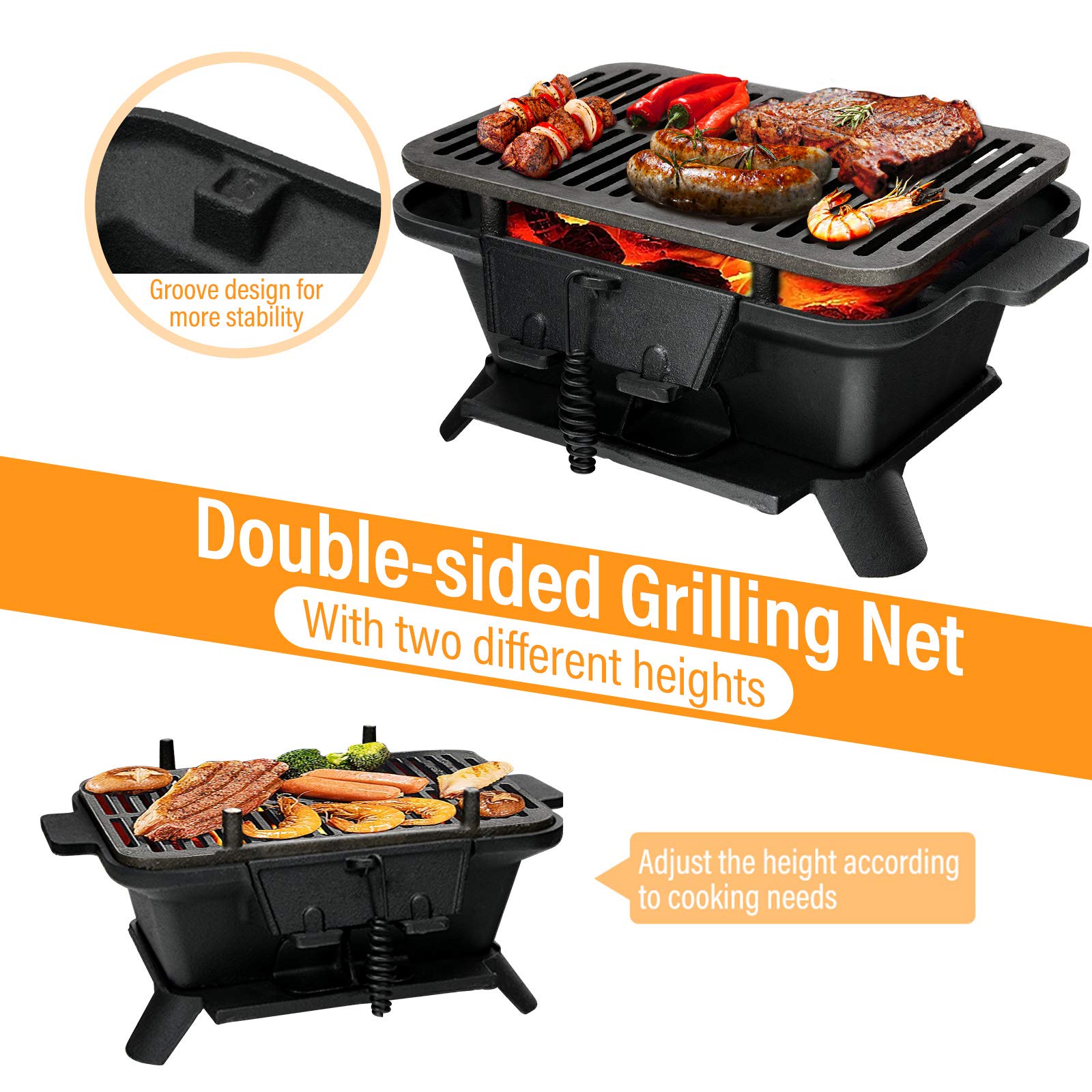 Enjoy the ultimate cookout and delicious food with this charcoal grill. Spacious cooking area allows you to cook plenty of delicious food, perfect for all sorts of outdoor activities from backyard parties to camping. Grilling net with two adjustable heights is designed to meet your different cooking needs, which can be used on both sides. Fire gate is considerately built to safely add and remove coal. Conforming to offer different flavors and tastes, the air regulating door helps to adjust the firepower.You just need to easily slide the door left or right. Use this charcoal grill for family gathering at the park, or with friends in the garden or backyard. The charcoal grill design keeps the most original flavor of meat to meet your desire for smoke taste. Surrounded by savory and delicious aroma, surely you will like the charcoal grill.