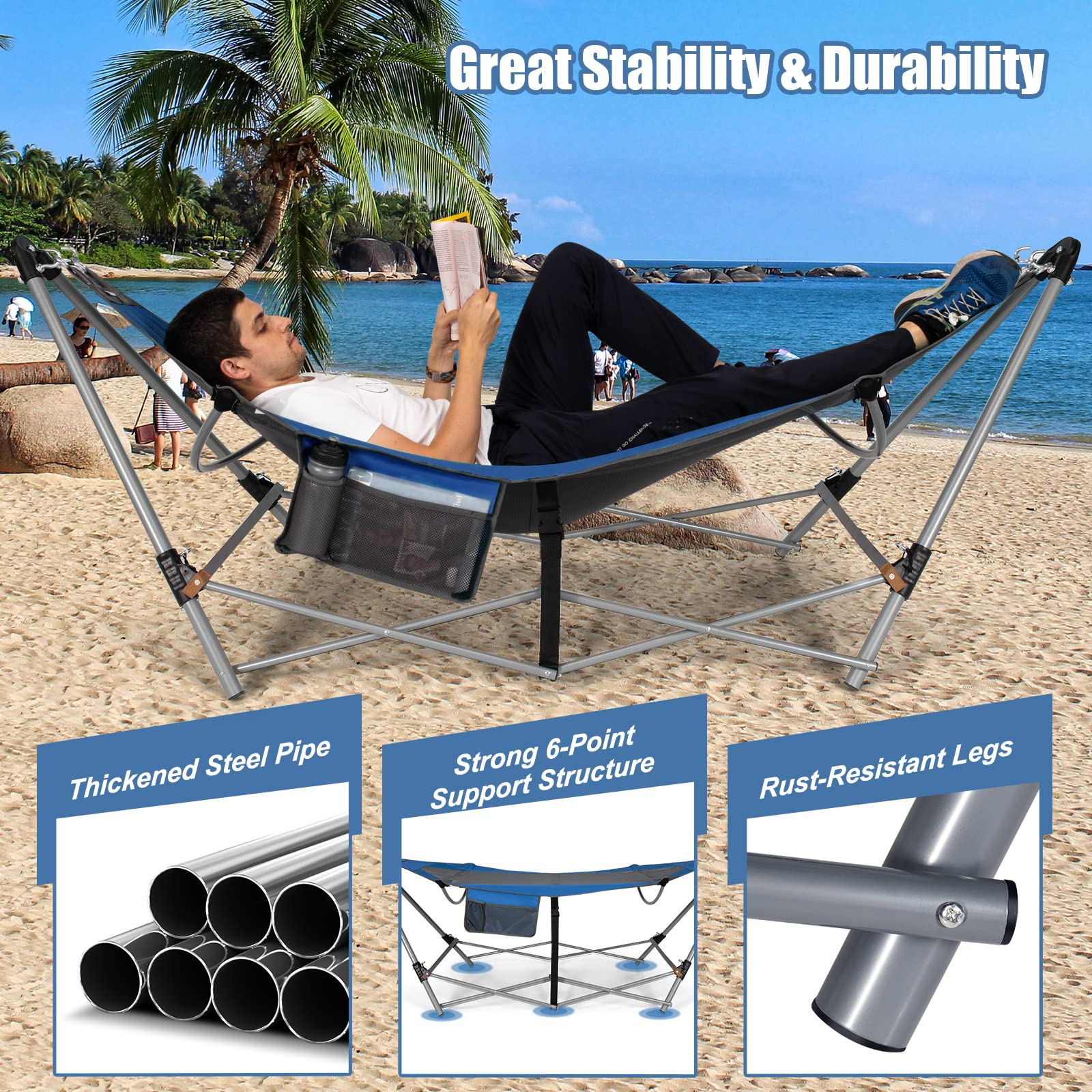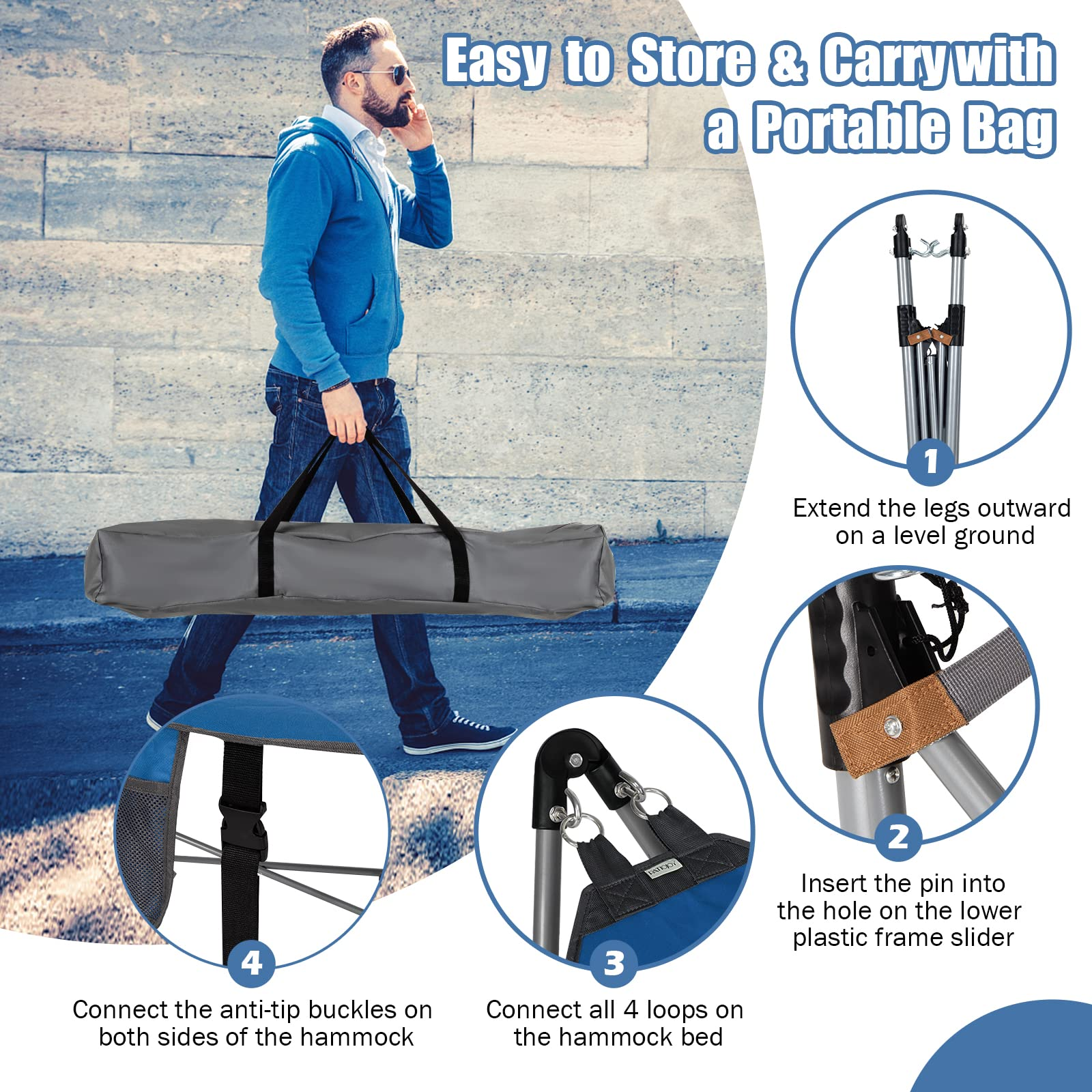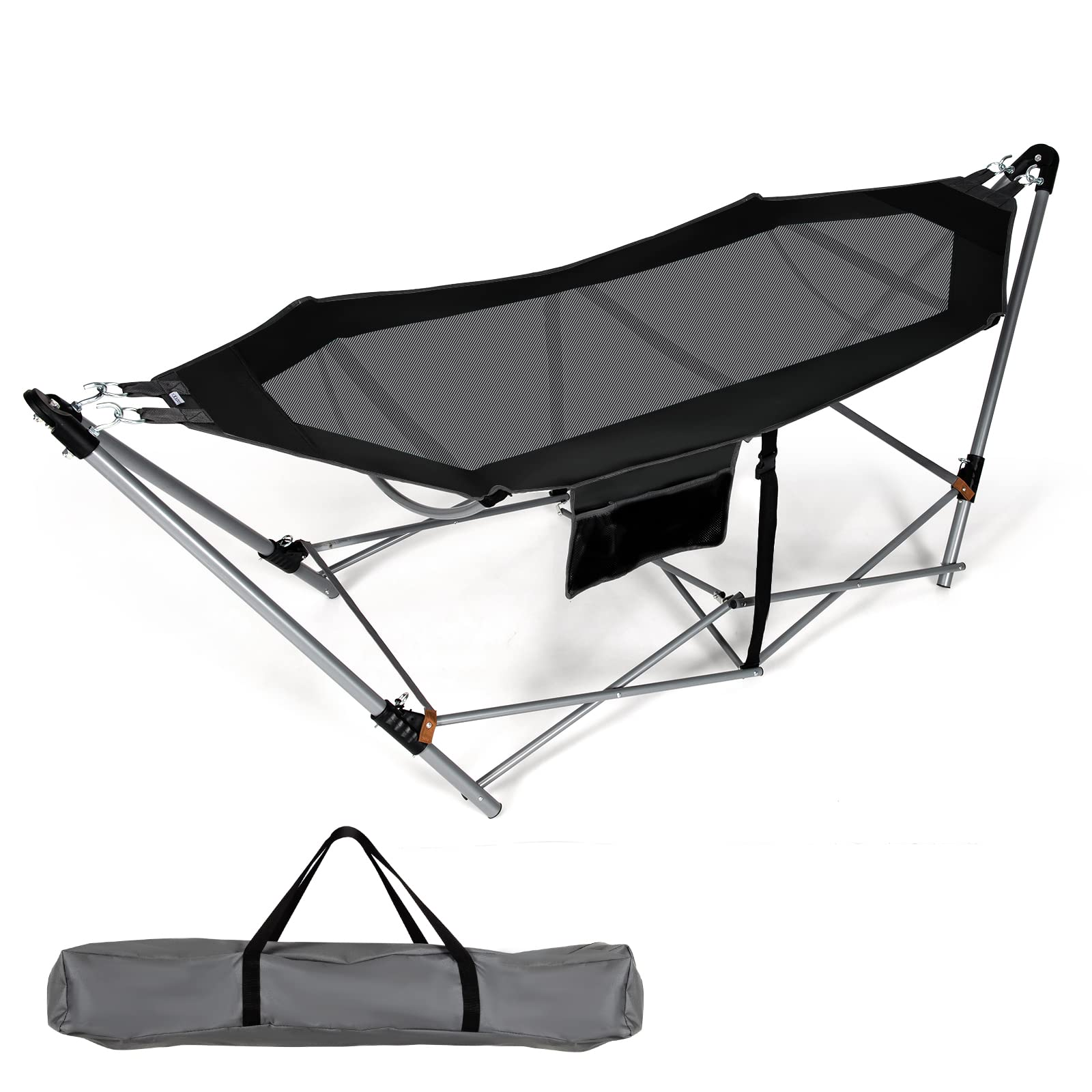 Giantex Portable Folding Hammock, Lounge Camping Bed with Hammock Stand