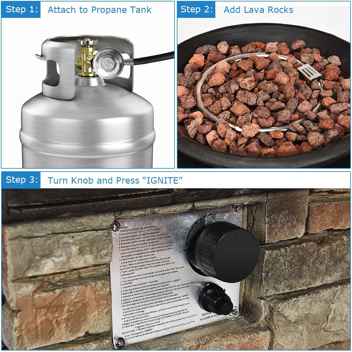 - Convenient to Use: It is easy to use after installing the AAA battery (included in the package) in the igniter, simply press the igniter and turn the switch control to adjust flames. It is more real and safe with the radiation of the lava rocks to provide a pleasant ambiance.