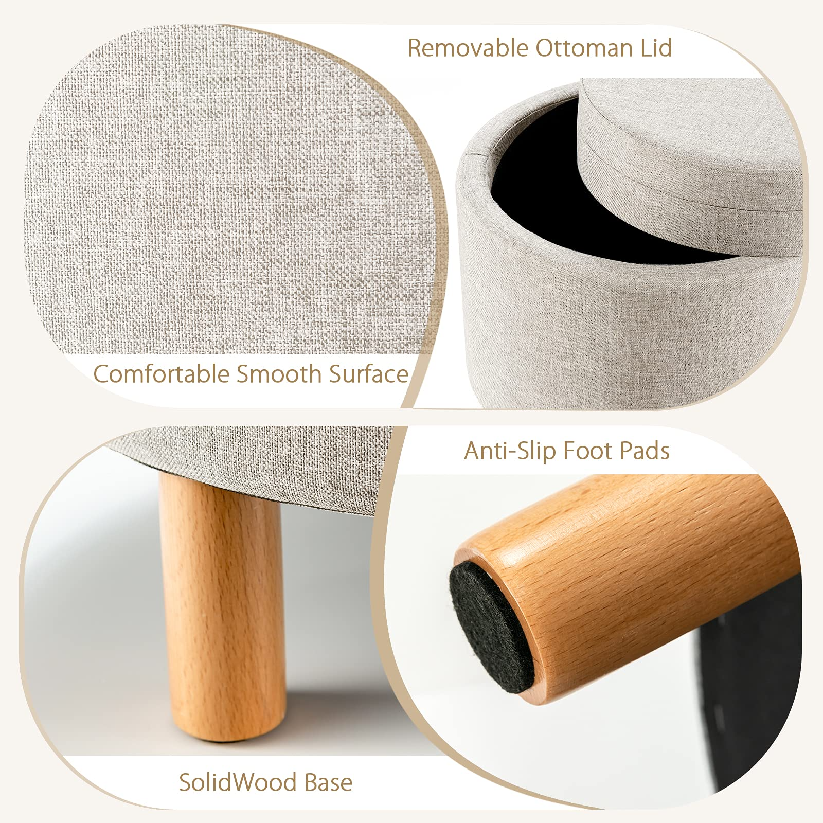 - Storage Ottoman with A Removable Tray:The round ottoman is equipped with a removable tray, which allows you to treat this stool to a tea table. Flipping over the lid, you can put some desserts and cups to enjoy tea time. Since its wooden layer, this tray ensures high load capacity and easy maintenance.