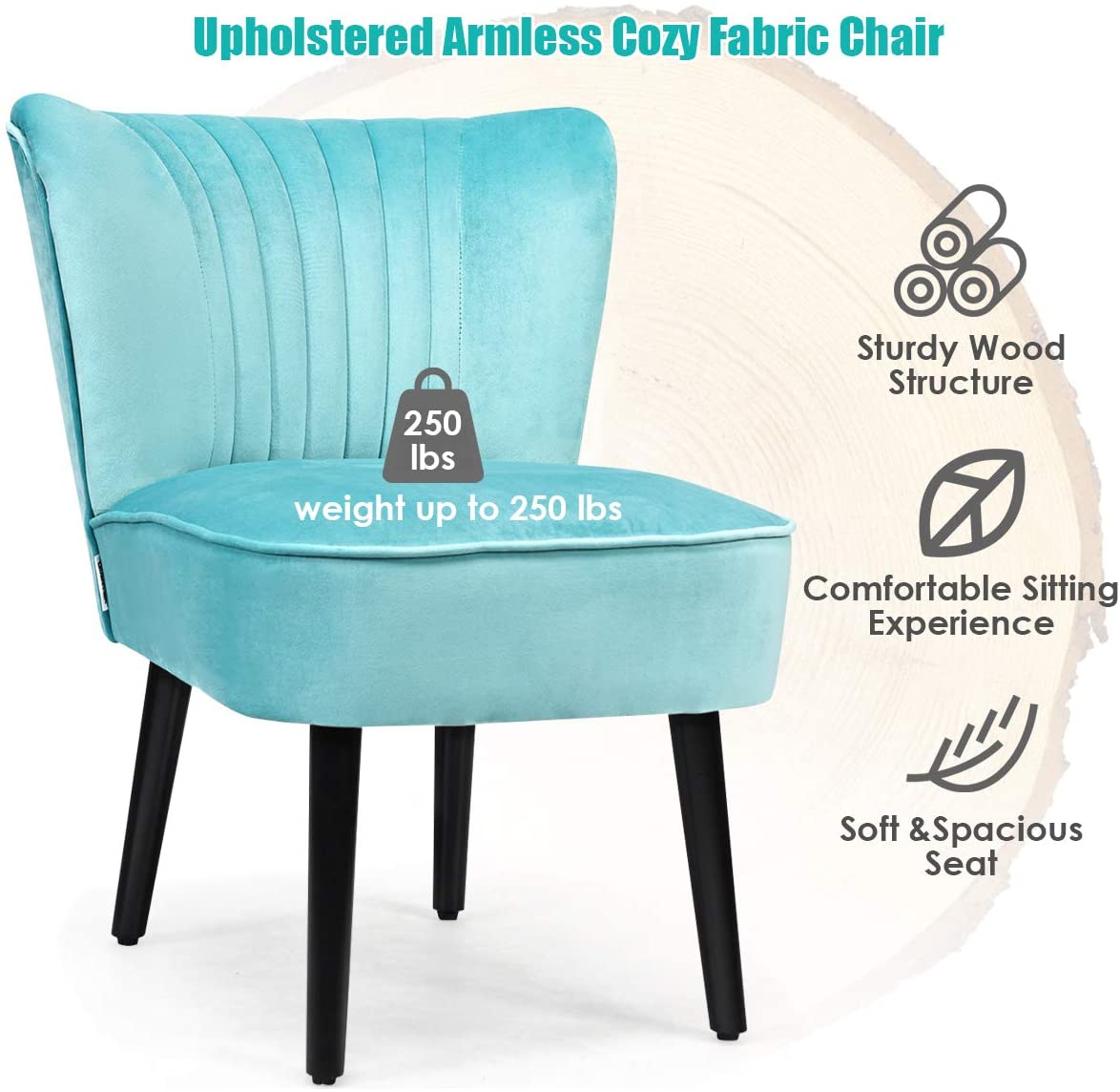 - Reinforced Sturdy Frame & Floor Protection: It is well constructed with durable rubber wood legs and a wood frame that offers a solid foundation. The tight upholstery is carefully crafted to ensure long-time use and the weight capacity is up to 250 lbs. Moreover, equipped with adjustable foot pads, our armless chair will keep in good balance during use and protect your floor from scratching.