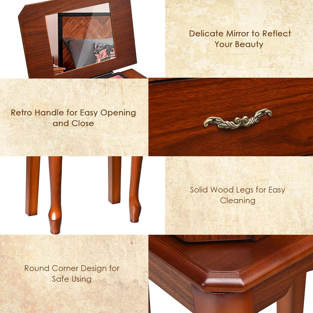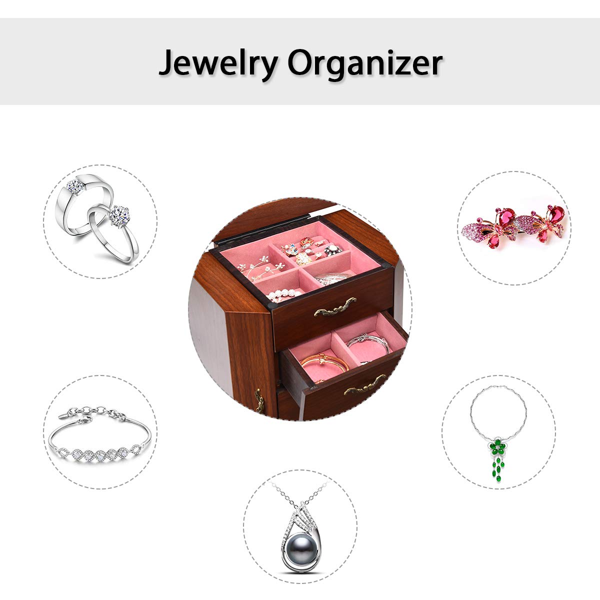 - Ergonomic Design: The height of the jewelry cabinet is ergonomics. It is close to the height of people sitting on the chair and you do not need to bend your knees, or stand up to take out your jewelry. You could just use it conveniently while you sitting on the chair or stool.