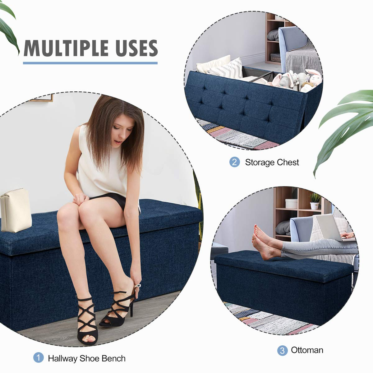 - Comfortable Sitting Experience:In addition to being a clutter organizer to keep the space tidy, the storage chest can also be used as a bench or ottoman to relieve your fatigue. The soft fabric covering and thick foam-filled upholstered seat will bring you with a comfortable sitting feeling.