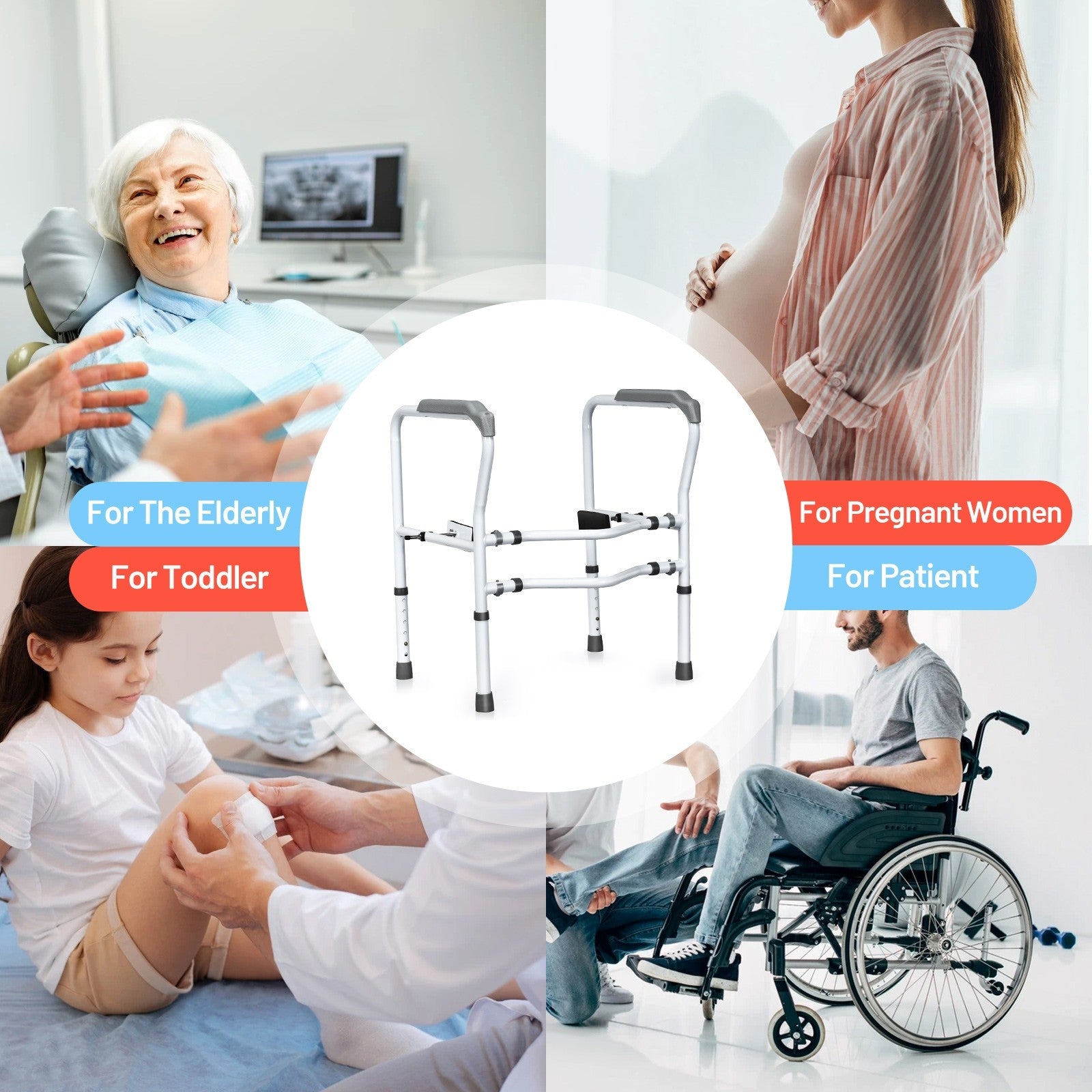 - Assist In Sitting & Rising Our free-standing bathroom safety rail can provide stable support and great convenience for users who need to use the toilet. Our toilet armrests can help the elderly, the disabled, recovered patients or people with temporary mobility difficulties to sit or stand easily.