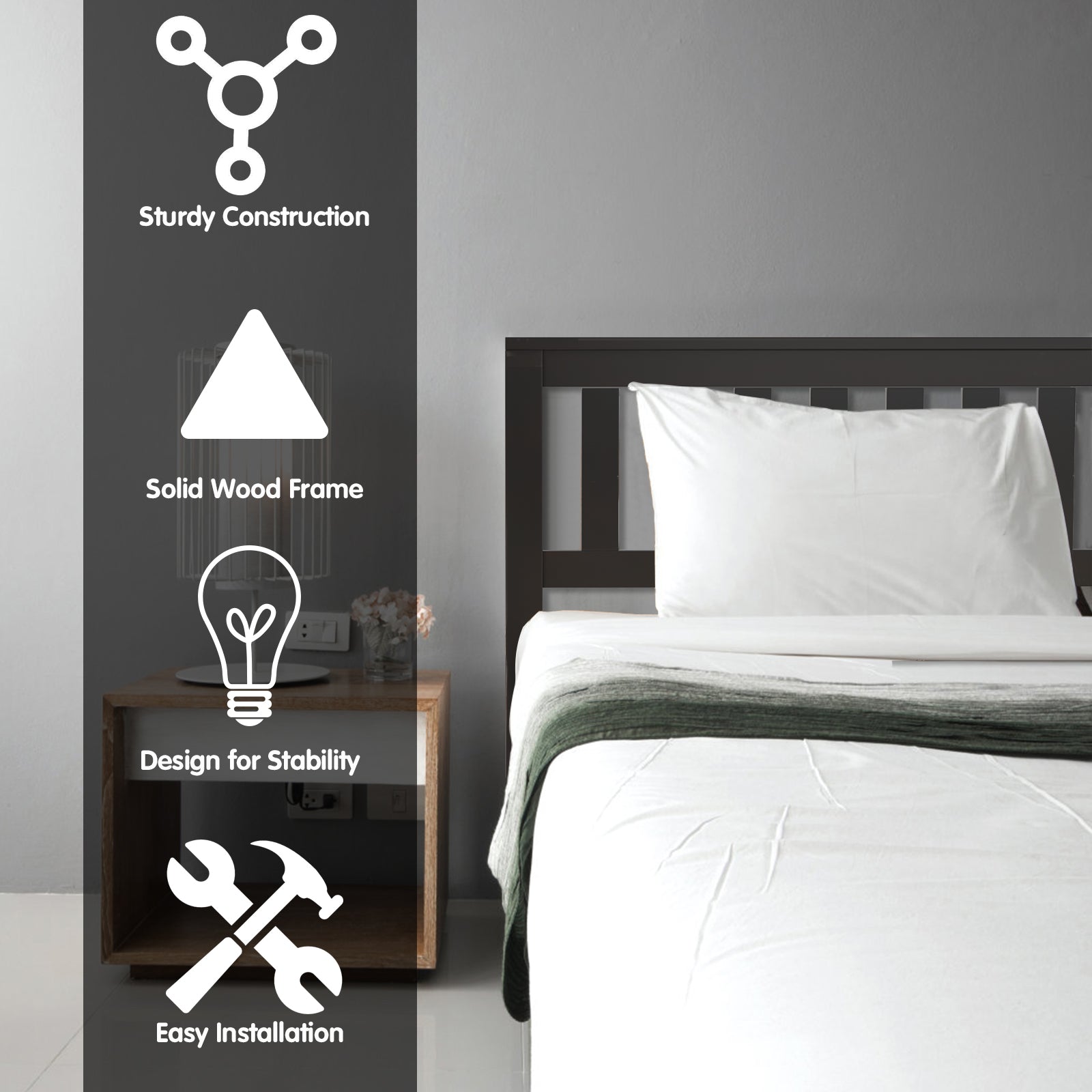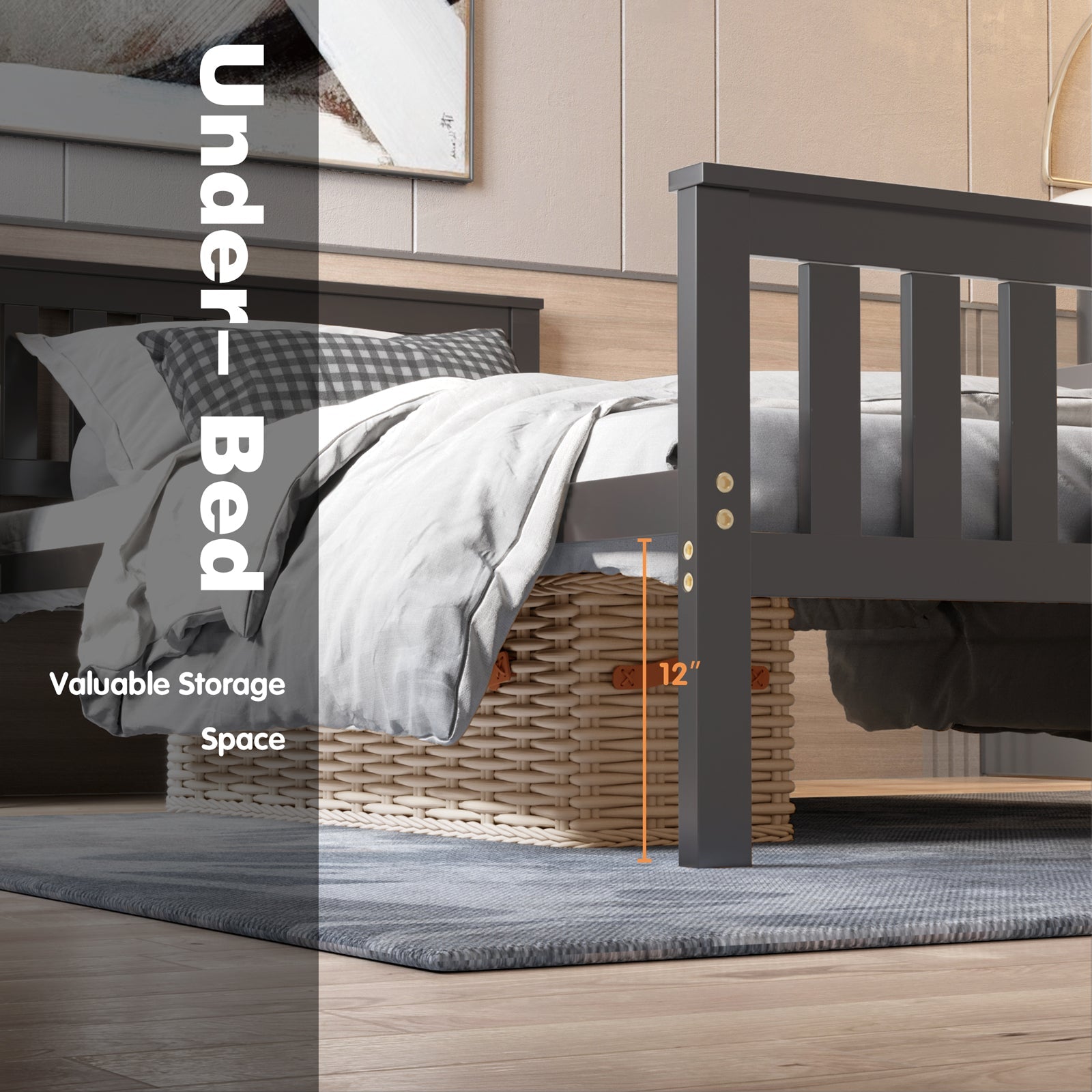 Our bed frame is your perfect choice that combines reliable quality and exquisite craftsmanship. The bed base is composed of solid wood frame to ensure durability and long lifespan. The extra middle support legs on each side of the bed enhance its weight capacity and stability. The headboard provides you with pleasant using experience whether against or lying down on it. The bottom of bed is spacious enough to store idle items and takes full advantage of space. The concise design and elegant appearance is compatible with various room styles, which is suitable for bedroom, apartment and hotel.