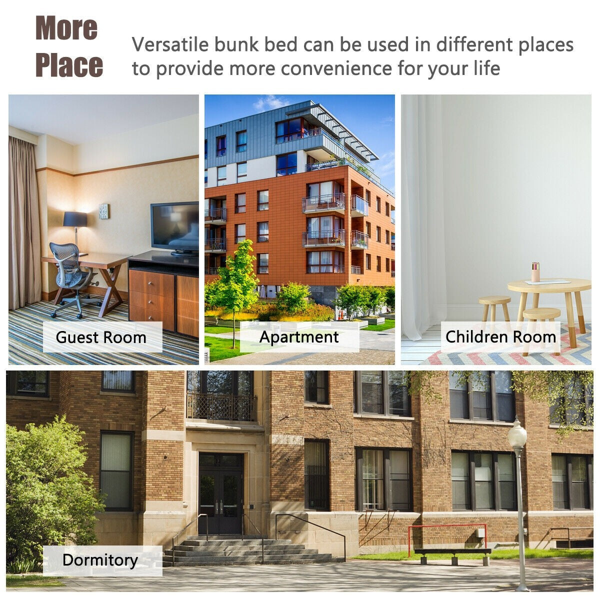 - [4 in 1 Design Bunk Beds]: Our pull-out bunk bed can be used in 4 different sizes, which can create extra sleep space when needed. What's more, this bunk bed can convert into 2 single beds to save space while not in use. This space-saving design is suitable for a compact room with low ceiling or limited space.