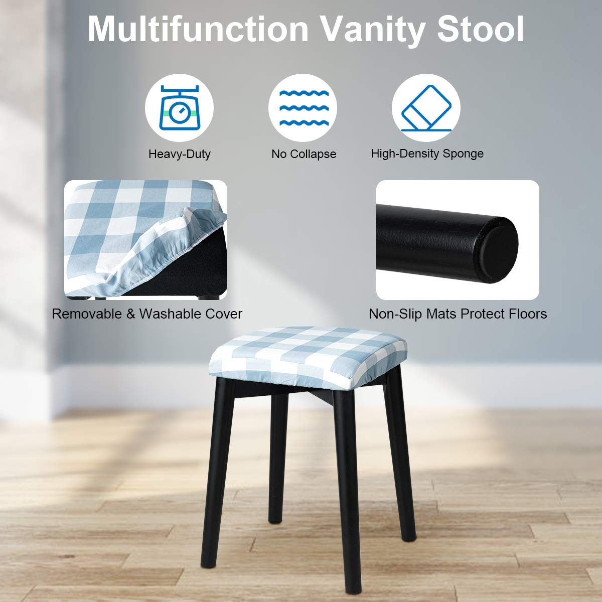Soft Cushioned Stool with Removable Cover: The cushion of this dressing stool is made of soft cloth and sponge. High density and thick sponges is comfortable to sit with high resilience. The detachable grid cushion cover is breathable and easy to clean. It's perfect for perching on when you're doing your hair or makeup. However, this separate matching stool can also be used as an ordinary stool.