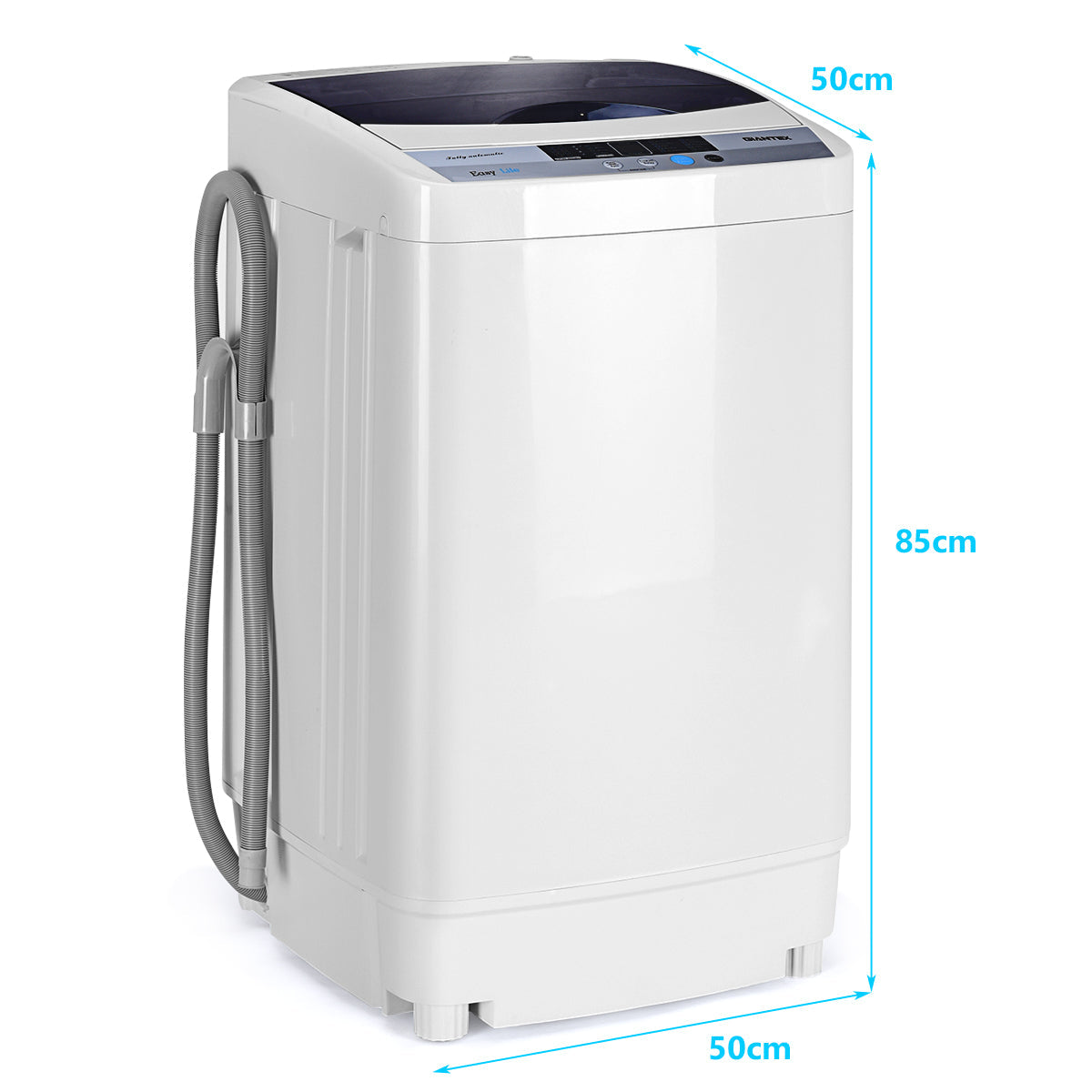 This portable compact washing machine is a perfect solution to your living place because it only needs a small space to store and is easy and safe to operate. Equipped with a variety of convenience features, our washing machine includes a see-through lid, electronic controls with an LED display, a stainless steel inner tub, and 2 water pipes. The max weight capacity of this washing machine reaches 9.92 lbs, which is very suitable for you doing medium-weight laundry. Besides, this machine is characterized by a built-in drain pump and a drain pipe which allow you to easily drain out dirty water. With this laundry washing machine, you will find washing is an easy job.