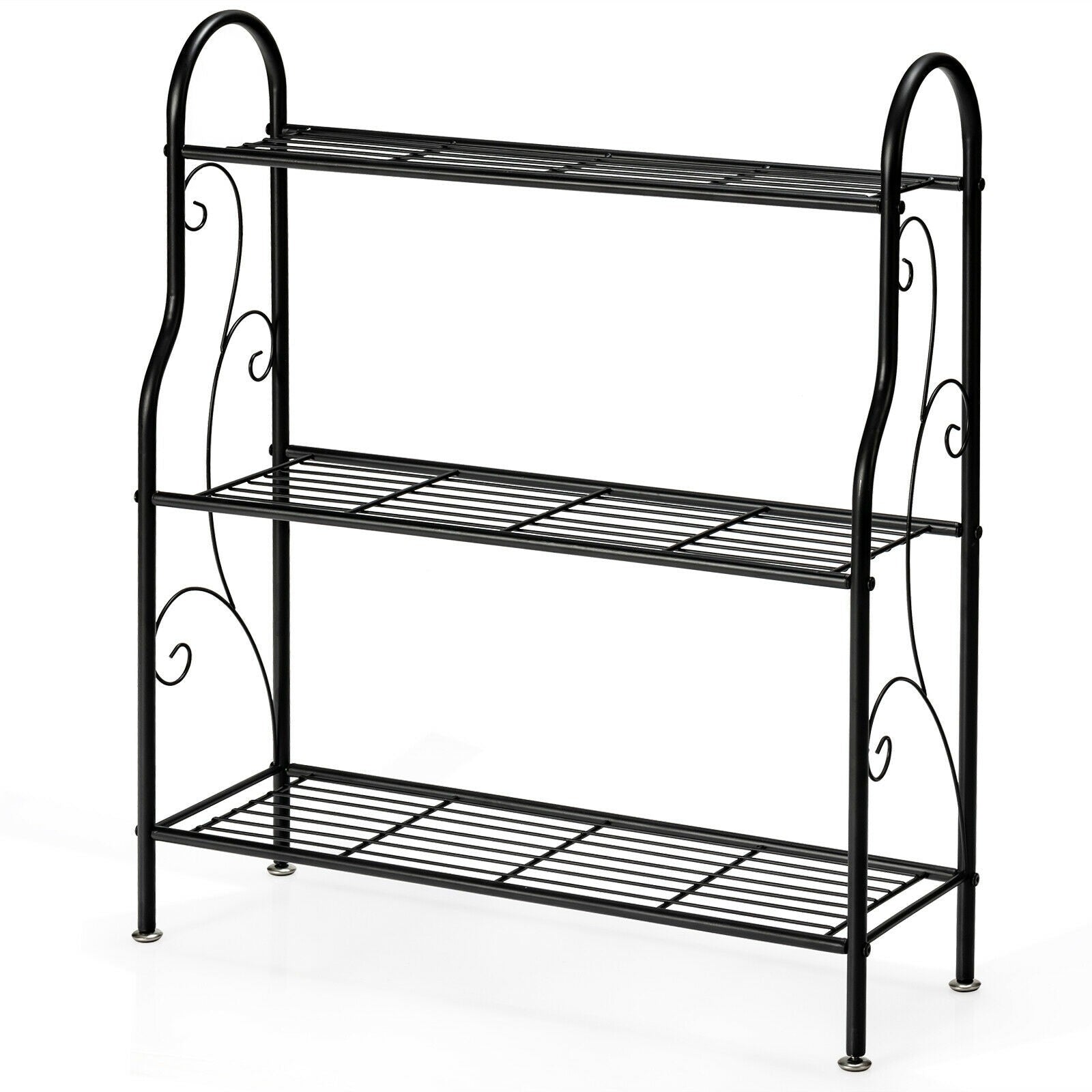 Made of sturdy metal construction, this flower display rack ensures great stability and toughness. Protective powder coated finish makes it rustproof and weather-resistant for indoor and outdoor use. 4 adjustable foot pads on the bottom of the stand help to keep it stable even on uneven ground and protect the floor from scratching. Moreover, this 3-tier storage rack can not only organize your plants and flowers neatly, but also place different decorations, shoes, tools, books, toys, etc. The classic style and elegant flower patterns make this stand a perfect addition to your living room, balcony, kitchen, garden, patio and more.