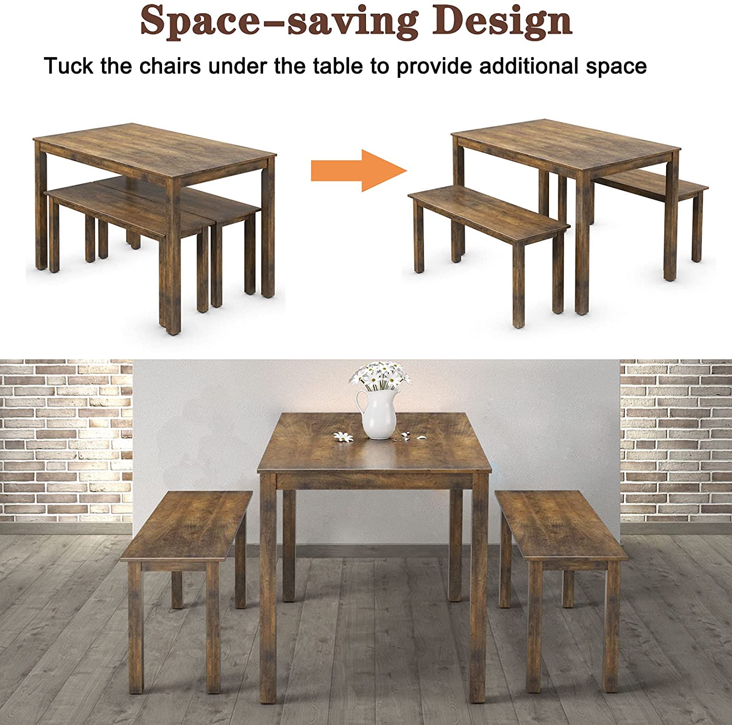 Include 1 rectangular dining table and 2 benches, for daily dining needs