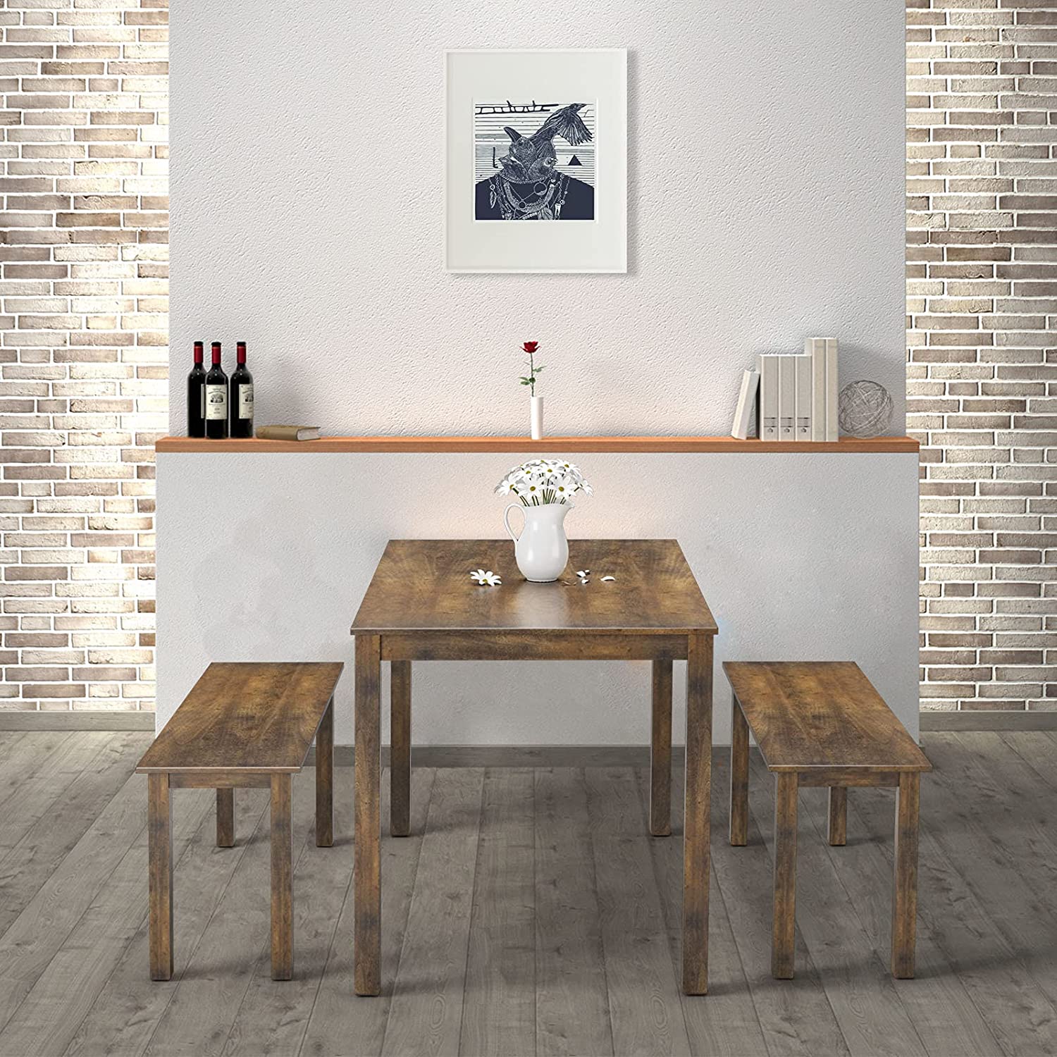 Wooden 3 Pcs Kitchen Dining Room Furniture for 4, Modern Studio Collection Table Set with 2 Benches, Dinette Set (Coffee Brown)