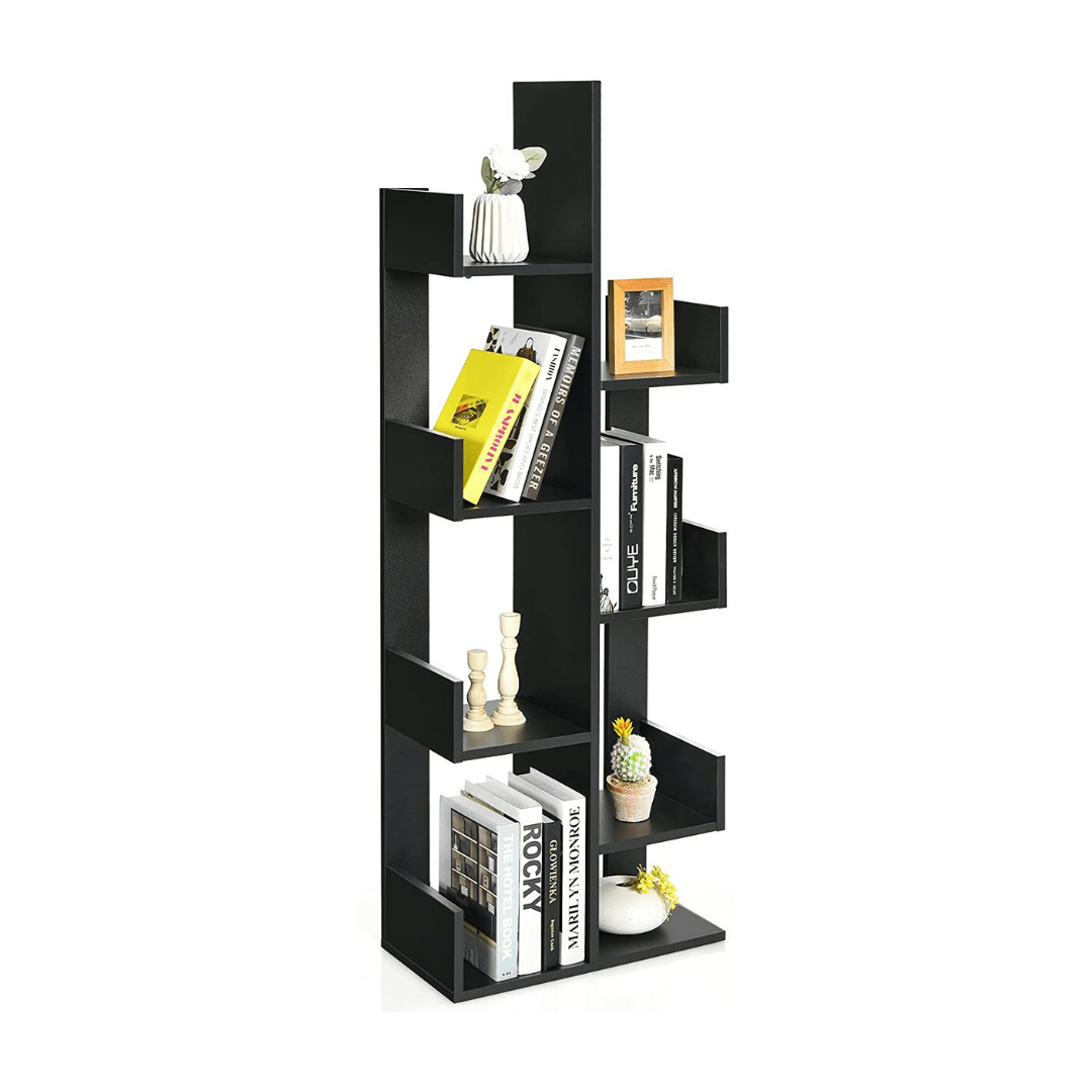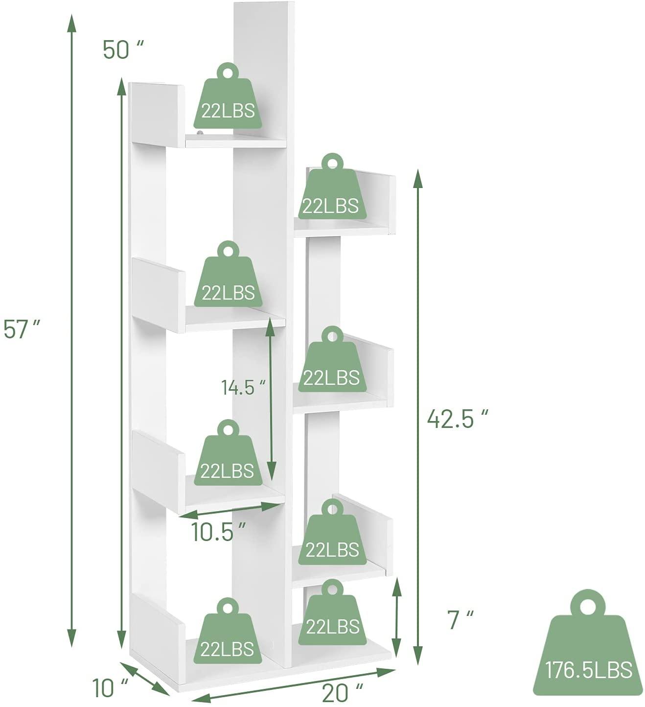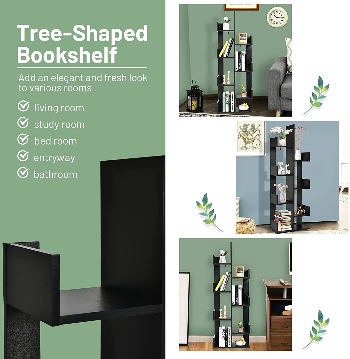 Tree-shaped book shelf with 8 storage compartments helps you organize messy books and belonging without taking up too much space. You can fetch your supplies conveniently due to its open shelves design. Also, it has side panels and 2 back panels to prevent book from falling. Sturdy construction ensures excellent load-bearing and stability, making it strong enough to hold various items. With anti-toppling fitting, the bookcase can attach to the wall firmly for super safety. This elegant and functional bookcase is a perfect addition to your living room, bedroom and study room.