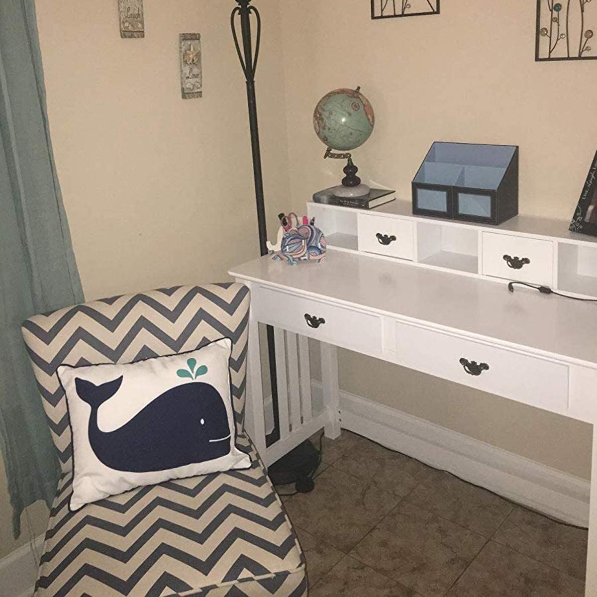 This Is Our Brand New Mission Writing Desk,Which Will Be Great Addition To Your Home And Provide A Great Convenience ForYou. The Large Drawers Are Accessible From The Front, And The Floating Organizer With Cubbies Can Be Moved.