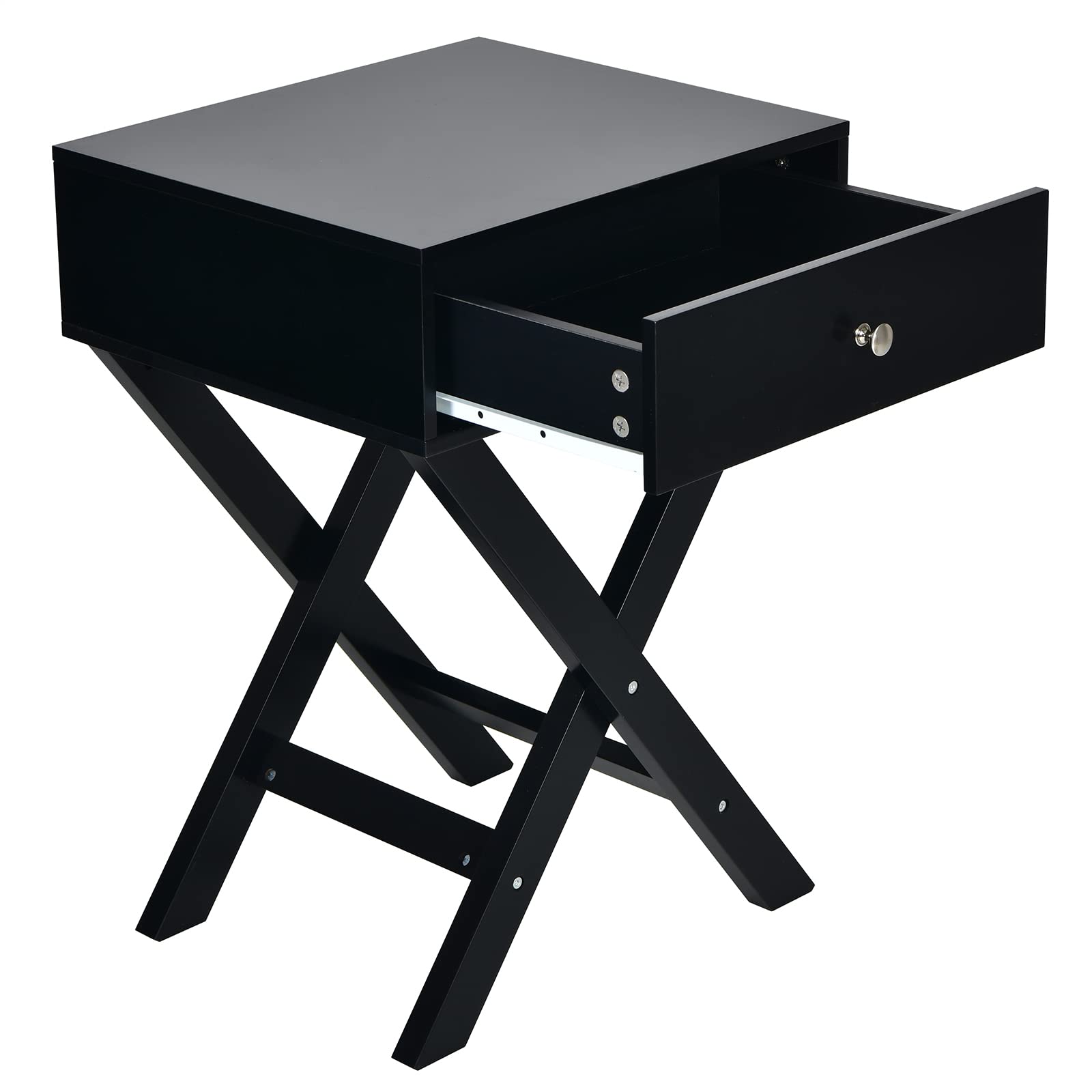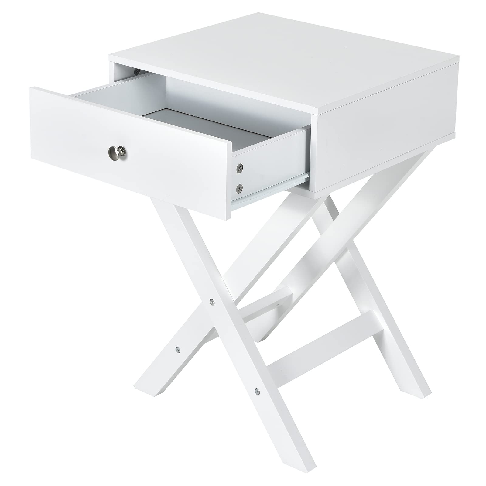 This multifunctional side table is suitable for various rooms and helps to keep your living space tidy. Equipped with a spacious tabletop and large drawer, this end table provides ample space to store and display your daily essentials?and small decorations. Made of high quality MDF board with waterproof paint, this nightstand ensures a long service life. Besides, the X-frame legs make the table much more stable to support more items without any wobbliness. Smooth drawer slides and round metal handles are designed for convenient use. Combined simple design with modern charm, our side table can brighten up your home while organizing your items in order.